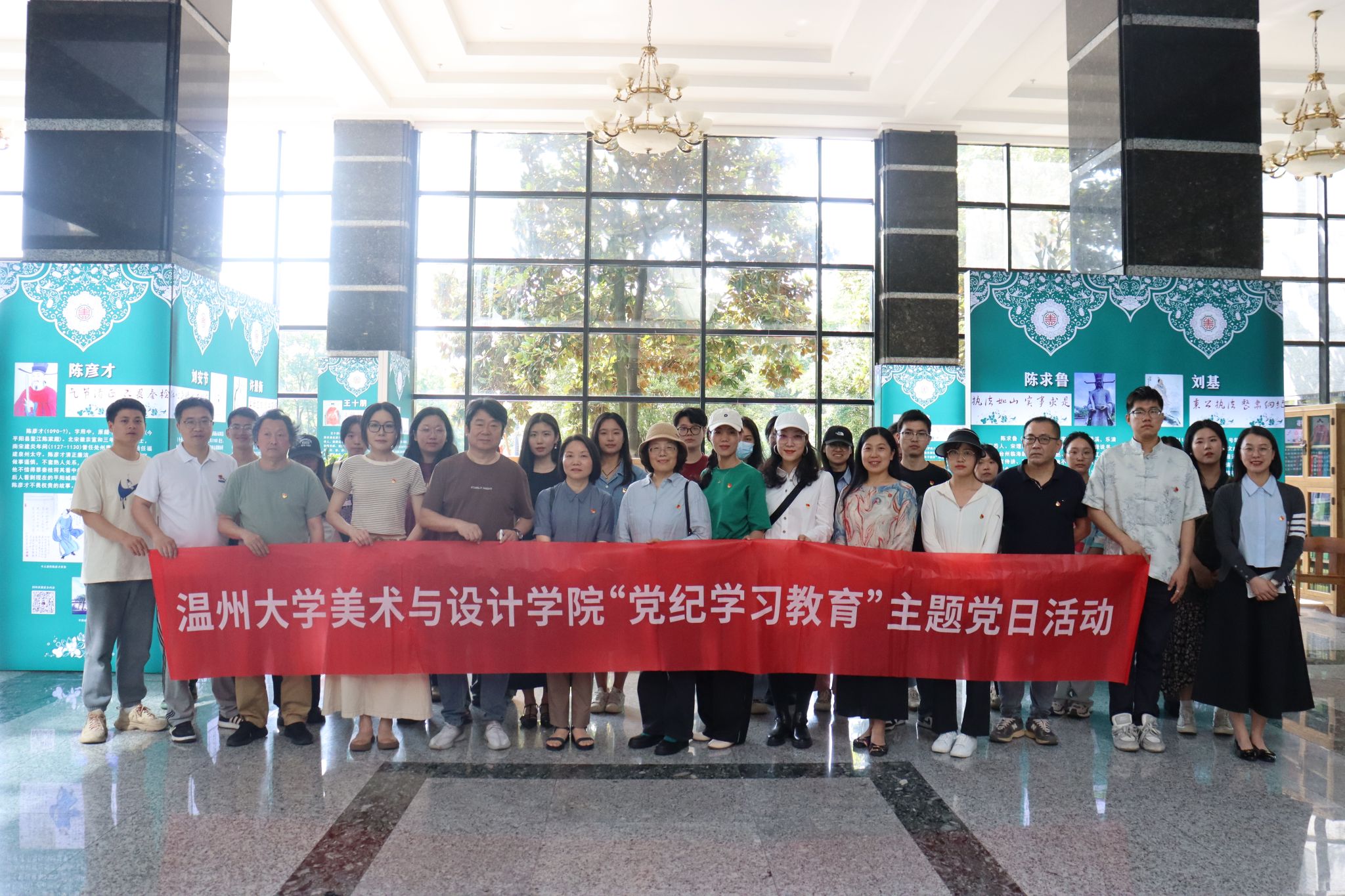 为深入开展党纪学习教育,进一步提高党员干部的党性修养和廉洁自律意识,5月29日下午,亚洲电竞投注平台 师生党员前往温州大学图书馆参观温州清官廉吏展进行现场学习。