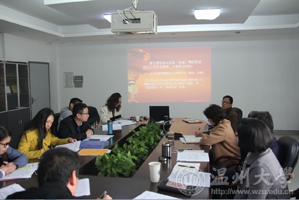 3月14日,亚洲电竞投注平台 召开党务工作例会暨理论中心组(扩大)学习会议,深入贯彻落实全国(全省)高校思想政治工作会议精神。电竞博彩平台 领导班子成员,党总支委员,各支部书记及科室负责人等参加了会议。会议由院党总支书记张丽萍主持。 在电竞博彩平台 党务例会上,张丽萍传达了学校党务工作例会主要精神,着重强调会上提出的要扎实推进理论武装工作、大力加强基层党组织建设、严格落实从严治党的两个责任、努力打造高水平的干部队伍、继续提升思想政治工作以及切实维护校园安全稳定等。张丽萍对2017年电竞博彩平台 党建工作做了重要部署,从加强基层组织建设、加强思想政治工作、深化学风建设、探索大学生创新创业机制、凝练校园文化品牌等方面着手,重点抓好25项具体工作,为推进电竞博彩平台 发展提供坚强有力的保障。 在中心组理论学习扩大会上,与会全体积极献言献策,就深入贯彻落实全国(全省)高校思想政治工作会议精神展开大讨论。会议认为,思想政治工作如何创新方式方法、创新机制载体尤为重要。会议提出,要建立回归本真的师生关系,使师生关系始终建立在“教”与“学”为基础的知识和技能上,避免师生关系被“工具化”;要充分利用校园文化建设的各类载体开展润物无声的教育工作,如从景观建筑“溯初亭”来探索温大的历史故事;要挖掘日常生活的典型案例,保有思想政治教育的真实与丰满。会议还提出,思想政治工作根本上是做人的工作,只有紧紧围绕学生、关照学生、服务学生,要努力在全院形成立德树人的合力。会议认为,思想政治工作进课堂尤为必要,要将“思政课程”向“课程思政”转变。要推动专业课程去挖掘更多的精神养料,将传统文化如书画、建筑、服饰等蕴含的德育意识融入专业教学,增加专业课程的厚度与温度;要利用学生艺术采风等实践课程,去深刻理解德育教育的历史和现实意义;要充分挖掘温州特有的传统文化项目,作为专业德育课程的丰富教育资源。