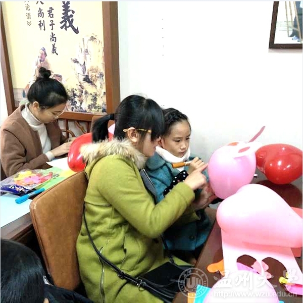 12月3日,温州大学“艺家人”青年志愿者协会开展的定期支教活动在茶山街道梅泉社区如期举行。这期支教采用的风格是开放式教学,目的是让志愿者与小朋友有更多的交流。 课程的主题为“气球的世界”,小朋友们在志愿者的帮助下通过绘画和拼接的方式装饰气球。不一会儿,一个个表情各异、机灵搞怪的气球在小朋友们的手中呈现出来了,有的像龙猫,有的像草莓,有的像猫咪,活灵活现。志愿者们与小朋友们在制作的过程中嬉戏打闹,就像朋友一样的玩耍,关系也更亲近。气球本身就代表了童真、梦想与美好,志愿者与小朋友一起装饰气球,不仅多了与他们的沟通,也能促进小朋友们的思维和想象的发展。 图/文:王伟