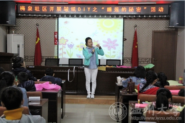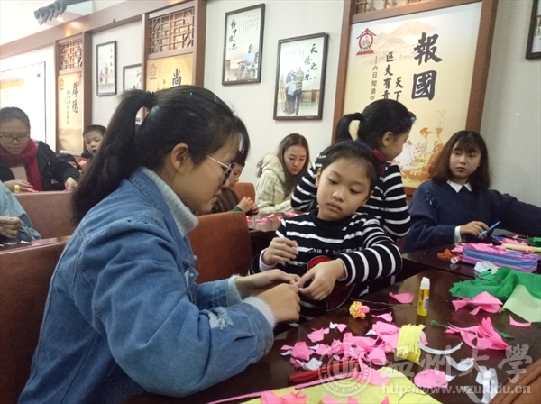 12月10日,电竞博彩平台-亚洲电竞投注平台 “艺家人”青年志愿者协会“载梦小舟”梅泉支教活动在梅泉社区开展第六课志愿教学,此次支教活动是本学期的最后一期,在课程结束后随即召开了结业典礼,青协梅泉基地负责人、温大志愿者们及小朋友们参加了结业典礼。 这周开展的支教课程活动主题为“皱纸DIY之睡莲的秘密”。主讲志愿者是美院16级美术师范班的张蕾同学,首先她带领小朋友们了解制作步骤以及制作过程中需要注意的问题,接下来就是小朋友们在志愿者的协助下跟随张蕾同学的解说来制作有趣的睡莲啦!小朋友们有条不紊地跟随着主讲人的讲解,将睡莲的各个部位都完成了,将其组装成一朵朵幽静而神秘的睡莲,真是魅力无穷,让人不得不感叹小朋友们创意无限! 支教活动结束后便是结业典礼,“艺家人”干事汪成龙同学的发言拉开了此次典礼的序幕,首先是由亚洲电竞投注平台 的李雪涛老师发言讲述了对梅泉支教活动的大力支持与期望,同时对每一个志愿者的付出表达了赞许与欣赏:“我相信每一位来到这里的志愿者所付出的是一份不求回报的爱”。随后是梅泉社区的负责人发言表示对我们温大美院青协的支教活动给予极大的支持和赞同,相信志愿者们的热情犹如阳光,照暖每一个小朋友的心,带着他们发现艺术的美!最后,结业典礼的圆满结束也预示着下学期将会有完美地开展,让我们期待吧! 图/文:鲍彬彬