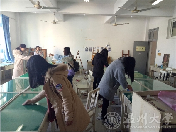 2016年12月17日,电竞博彩平台-亚洲电竞投注平台 “艺家人”青年志愿者协会在美院二楼举办了“拒绝课桌文化”活动,倡导同学们文明上课,保持公共教学区教室的干净整洁。 在活动负责人的带领下,志愿者们对美院三楼教室的课桌开始了清洁。志愿者们在整理好桌上的纸张后,一手提着装有香蕉水的杯子,一手拿着毛巾,都埋头仔细地擦着桌子的边边角角,看上去一个个都那么认真。虽然香蕉水带有极刺鼻的气味,但志愿者们没有因此退缩,整个教室由一开始的杂乱无章到最后的整洁有序,是志愿者们带着“不怕苦不怕累”的精神一直坚持到活动结束的结果。 通过此次的美化课桌活动,志愿者们在付出劳动汗水的同时也收获良多,其中的明确分工、团结协作是我们当代大学生的优秀品格。另外此次活动不仅可以对校园文明进行一定程度的宣传,同时也增强了大学生的环保意识,值得我们发扬! 图/文:朱灵睿 王 伟 鲍彬彬