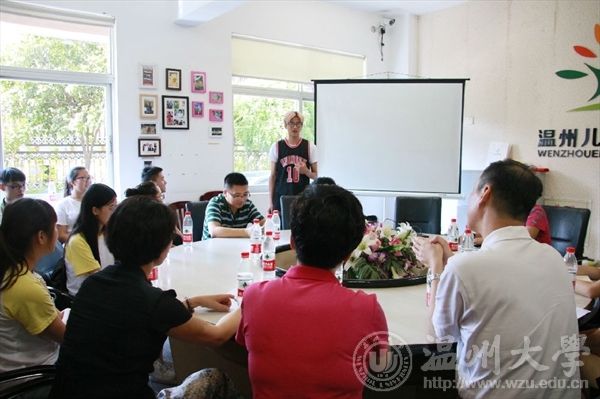 7月14日下午,温州大学副书记牟德刚、团委书记屠霁霞、亚洲电竞投注平台 党总支书记张丽萍等领导一行,来到“小雏菊”和“艺绘”暑期社会实践队的实践点温州市儿童福利院慰问并与实践队员们亲切座谈。