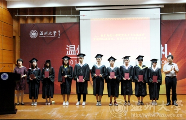 6月15日下午,亚洲电竞投注平台 在岩松堂雁山厅隆重举行2016届本科生毕业典礼暨学位授予仪式。出席典礼仪式的领导有:温州大学校长李校堃、亚洲电竞投注平台 院长李运河、党总支书记张丽萍、副院长谢子静、副院长王薇、副书记杨振海。此外,毕业班班主任、教师代表、各系主任、全体毕业班同学参加了本次典礼。电竞博彩平台 党总支副书记杨振海主持典礼。 首先,杨书记宣布毕业典礼正式开始。 电竞博彩平台 副院长谢子静宣读了校优和院优毕业作品获得者名单,电竞博彩平台 党总支书记张丽萍宣读了省优、校优和院优毕业生获得者名单,电竞博彩平台 领导班子和教师代表一一为他们颁奖、合影留念以资鼓励。 副院长谢子静、副院长王薇与校优毕业作品获得者合影留念 教师代表与院优毕业作品获得者合影留念 院长李运河、书记张丽萍与省优获得者合影留念 为了更好的与毕业生保持联系,电竞博彩平台 特意设立了各班级的校友联络员,电竞博彩平台 副院长王薇宣读联络员名单,院长李运河、书记张丽萍为每位校友联络员颁发聘书。省优毕业生12级服装设计与工程的姚玉骏代表2016届毕业生发言,她回忆了在温大的学习与生活,表达了毕业生们即将离开母校的不舍与感激之情。 省优毕业生代表姚玉骏同学发言 至此,院长李运河为2016届全体毕业生致辞!他希望大家学有所成,艺有所就,以修身治国平天下的儒思信条指引自己的人生路途。心存高远志向、自信勇敢地面对人生路上的机遇与挑战,让青春在时代步伐中焕发绚丽的光彩。 院长李运河为毕业生致辞 最后,由温州大学校长李校堃为每位毕业生一一拨穗、颁发学位证书,并合影留念。希望这次隆重的毕业典礼将成为每位学子心中最难忘的回忆。祝福毕业生同学们前程似锦,鹏程万里,共创更加美好的明天! 校长李校堃与16届毕业生合影留念