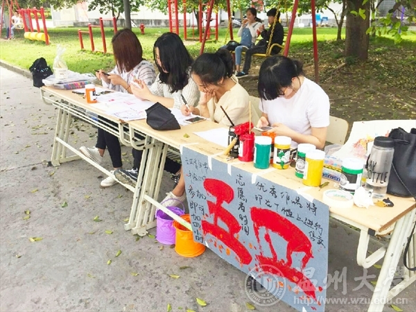 为让在校大学生进一步认识五四运动,学习五四精神,并丰富业余文化生活,增强同学间的凝聚力,2016年5月4日,在第97个五四运动纪念日之际,温大美院“艺家人”青年志愿者协会在A区主干道上开展了以五四运动为主题的手绘活动。下午一点,在A区主干道上,志愿者们并排坐在长凳上,开始在纸上绘画关于五四运动的图案。有的同学用马克笔,奇思妙想,绘制出五四运动的精神;也有的同学用水彩颜料,精心勾勒,描绘出青年大学生的朝气蓬勃。同学们利用不同的绘画工具,绘制出各式各样的作品,并且将优秀作品打印到T恤上。这次的活动开展的很成功。五四运动是一次彻底的反对帝国主义和封建主义的爱国运动,也是中国新民主主义革命的开始。“艺家人”青协借五四运动之际开展这次主题活动,其目的是为了让在校大学生进一步认识五四运动;同时也能丰富在校大学生的业余文化生活,激发他们热爱生活、热爱学习、勇于创新的热情,增强同学们间的凝聚力和战斗力,同时也希望他们能拥有积极向上的朝气。 文:“艺家人”青年志愿者协会图:“艺家人”青年志愿者协会