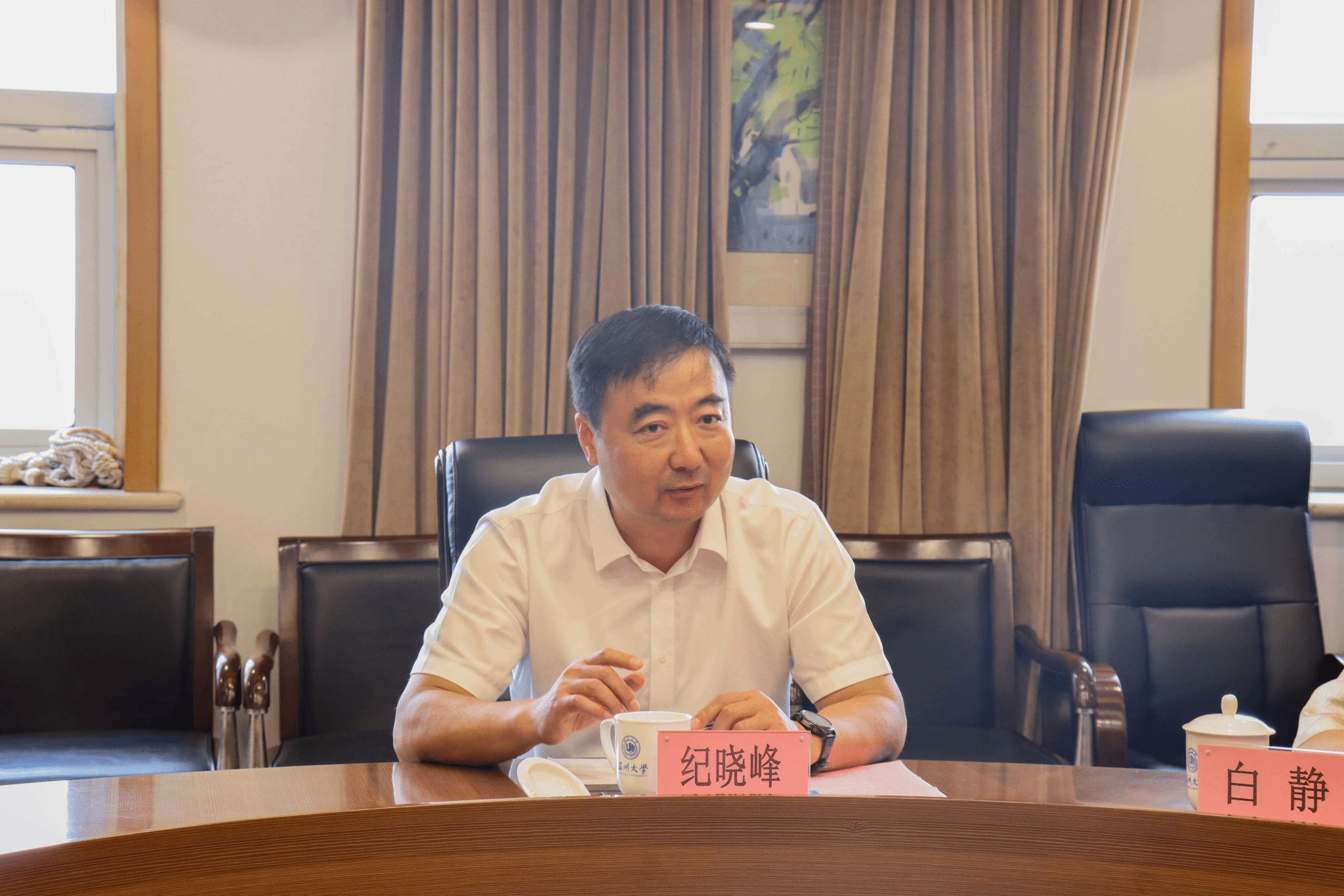 在会谈前,纪晓峰会长实地参观了温州大学校史馆、温州大学美术馆,深入了解学校办学历史与文化积淀,对学校的办学历史、环境和特色的学科布局给予充分肯定。