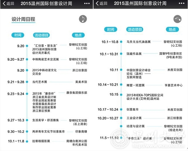 由中共温州市鹿城区委宣传部、电竞博彩平台-亚洲电竞投注平台 和鹿城区文化广电新闻出版局联合主办的“汇创意·慧生活”2015温州国际创意设计周于9月20日在黎明92文创园拉开帷幕。 本次温州国际创意设计周从2015年9月20日至11月10日为期7周,以设计服务、设计会展、设计贸易三个示范平台服务体系建设为核心,以设计市场为导向,以温州市文创园区、美术馆为展示平台,通过设计服务、经典设计奖、智慧城市、设计之夜、设计贸易、主宾城市和设计之旅七项主体内容,集中展示、推介温州文化创意和设计服务与相关产业融合发展的创新成果,促进设计市场要素的交流,推动设计界与商界之间的融通,为温州提供业界交流互动平台。