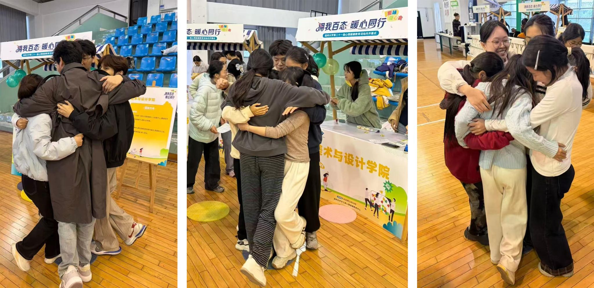 2025年11月19日下午,温州大学第二十一届心理健康教育活动月在南校区体育馆三楼篮球场温暖启动。本届活动以“拥我百态,暖心同行”为主题,旨在通过多元互动形式,传递心理关怀,凝聚校园温度。亚洲电竞投注平台 心理资助部充分发挥专业优势,独立负责电竞博彩平台 专属区域的设计与布置,将艺术表达与心理教育相融合,为开幕式注入独具特色的“美院温度”。