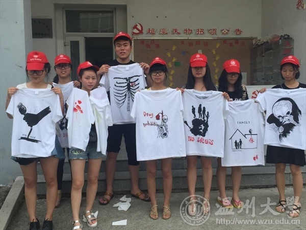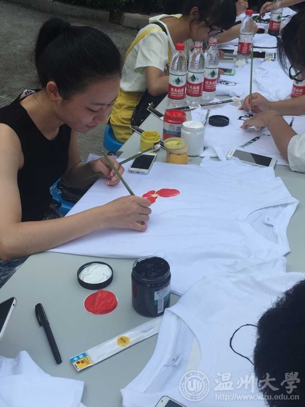 6月7日下午,电竞博彩平台-亚洲电竞投注平台 “艺家人”青年志愿者协会与温州市禁毒所在超豪学区进行“乐行学子梦”之世界禁毒日“禁毒于行,绘衣铭记”公益活动。志愿者们认真地用画笔在白T恤上绘制具有深度思考力的禁毒图样,活动氛围吸引一些路过的大学生纷纷驻足观看,有不少同学加入禁毒日活动中来要求一起绘画合影。同学们在白衬衫上加上自己对禁毒的感言和感悟,并且与自己的作品合影。这次活动激发了大学生用自己的专业知识向社会传播正能量关,增强了大学生的社会责任感。 拍摄者:张豪 通讯者:祝怡宁