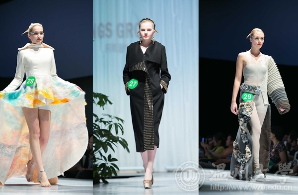 生如夏花,绚然绽放。5月23日晚,2015“风笛杯”温州大学服装设计专业毕业作品发布会在温州铂尔曼酒店顺利举行。本次发布会由中共温州市委宣传部和温州大学联合主办,为温州大学2015届服装设计专业的31名毕业生提供了一次展示自己作品的机会。中共温州市委宣传部副部长、温州市文明办主任邱小侠,温州大学副校长蔡曙光,温州大学党委委员、宣传部部长潘玉驹,温州市服装商会会长、浙江奥奔妮服饰有限公司董事长郑晨爱,温州大学教务处处长施晓秋,温州大学校友办主任周伟国,电竞博彩平台-亚洲电竞投注平台 院长李运河、党总支书记郑彩莲、副院长蔡可群、党总支副书记杨振海等领导与嘉宾出席了活动。本次作品发布会的评委团有清华大学硕士生导师鲁闽教授担任评委团主席,韩国知名品牌设计总监、知名设计师李书斌先生以及2015“风笛杯”温州大学服装设计专业毕业作品发布会的赞助企业代表、浙江风笛服饰有限公司董事长冯益跃女士。明星嘉宾包括曾获2011年第六届亚洲模特奖新人奖的韩国影视新星李泰焕先生,主演过电视作品的内地实力派女演员胡彩虹女士,以及内地影视新星王娅楠女士等嘉宾。开幕式上,中共温州市委宣传部邱小侠副部长、温州大学蔡曙光副校长做了热情洋溢的致辞。 温州大学2015届服装设计专业的31名毕业生的参赛作品在T台上一一得以精彩呈现。本次活动以“时尚温州-万物生长”为主题,意在表达设计新秀们生机勃勃、前途远大的美好愿景。作品饱含毕业生的艺术灵性与心血付出,内容充实而广泛,囊括东方和西方、历史和未来、浪漫和现实、经典和混搭等元素,综合运用新型材料与材质各异的其他原材料,摆弄异彩纷呈的面料再造设计手段,如剪切、镂空、花饰、褶饰、印染、珠绣、线绣、叠加、拼贴等,突破传统服装款式与版型的束缚,展现新锐设计师们对服装艺术的理解与追求。不仅展示了毕业生对专业知识的综合运用,更是他们多年来对生活、对艺术、对创作的理解,他们将内心真情实感的抒发,融入到了设计和创作作品中,具有丰富的时代特征和个性化的现代创作精神。 服装设计专业毕业作品发布后,浙江风笛服饰有限公司董事长冯益跃女士上台讲话。她说:“年轻的设计师们是在用自己的生活感悟和艺术灵感创造出这一幅幅美妙的设计作品,充分展示大学生的年轻活力与无限创意,体现“青春舞动灵感,激情彰显时尚”的终极目标,用个性化的设计语言表达了对艺术、时尚及服装文化的理解和探索,同时也展示了亚洲电竞投注平台 服装设计专业在时尚艺术设计领域的最新成果!”。随后,清华大学硕士生导师鲁闽教授和韩国知名品牌设计总监李书斌先生对学生作品予以赞许和肯定的精彩点评。经专家评委评议,潘瑞斯的《黒魅·缀》最终摘得金奖,孙梦、赵丽莎荣获银奖,赵惠颖、蒋璐瑶、胡婷婷等荣获铜奖,蒋欢欢等同学分别获得最佳创意奖、最具市场潜力奖等6个单项奖。随后,出席活动的嘉宾为获奖者颁奖。在悠扬的歌声中,2015“风笛杯”温州大学服装设计专业毕业作品发布会落下帷幕。 据悉:本次活动作为“温州大学时尚月”系列活动之三,活动宗旨是以校企深度合作的形式,借助传媒的力量,融合温州时尚产业和时尚品牌,以学生毕业设计作品为重点和主线,以创新创意时尚为亮点,发布最新流行资讯,举办时尚研究论坛,开展高品质系列时尚文化活动,展示温州大学时尚校园文化品牌,为拓宽校企合作、增进社会了解、开拓国际视野提供一个多方位的展示平台,为建设时尚温州作出积极贡献。