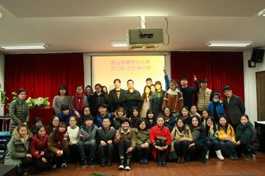 为迎接台湾佛光大学交换生黄亚晴和叶圣杰两位同学来到电竞博彩平台-亚洲电竞投注平台 进行交流和学习,3月4日下午,亚洲电竞投注平台 13级产品设计班与13视觉传达班在电竞博彩平台 2B4001会议室联合举办了欢迎仪式。出席本次欢迎仪式的领导有电竞博彩平台 党总支书记郑彩莲,副教授胡文超和副教授王薇。 首先,由两个班级的同学合作带来的弹奏演唱,清新的风格和用心的演绎博得了现场各位老师和同学们的阵阵掌声,也让来自台湾的新同学感受到了我们美院人的热情和友好。接着,两班班长为新同学致欢迎词,他们都热情大方地表达了对新同学的美好印象,并表示会在以后的学习生活中给予最大的帮助,并送上了班级同学精心准备的礼物。两位新同学分别作了自我介绍,王薇老师和胡文超老师分别介绍了本班专业的情况,并结合自身的经历表达了对台湾同学的赞许和期望,希望他们能够在美院的学习中收获更多的知识和经历。然后,郑彩莲书记代表亚洲电竞投注平台 向两位新同学的到来表示欢迎,说到两位台湾同学的到来会让亚洲电竞投注平台 与佛光大学交流的深度与高度更进一步,也希望两位同学在温州大学体验到不一样的文化和生活。最后的自由交流环节,同学们都积极参与,向新同学提出了很多有趣的问题,如“这么远过来会不会想家”“平时说话是不是像电视剧中那样’等等,两位新同学也热情地一一解答。 欢迎仪式的结尾,大家纷纷要求和新同学合影,于是,在热烈的气氛中欢迎仪式也圆满地落下了帷幕。