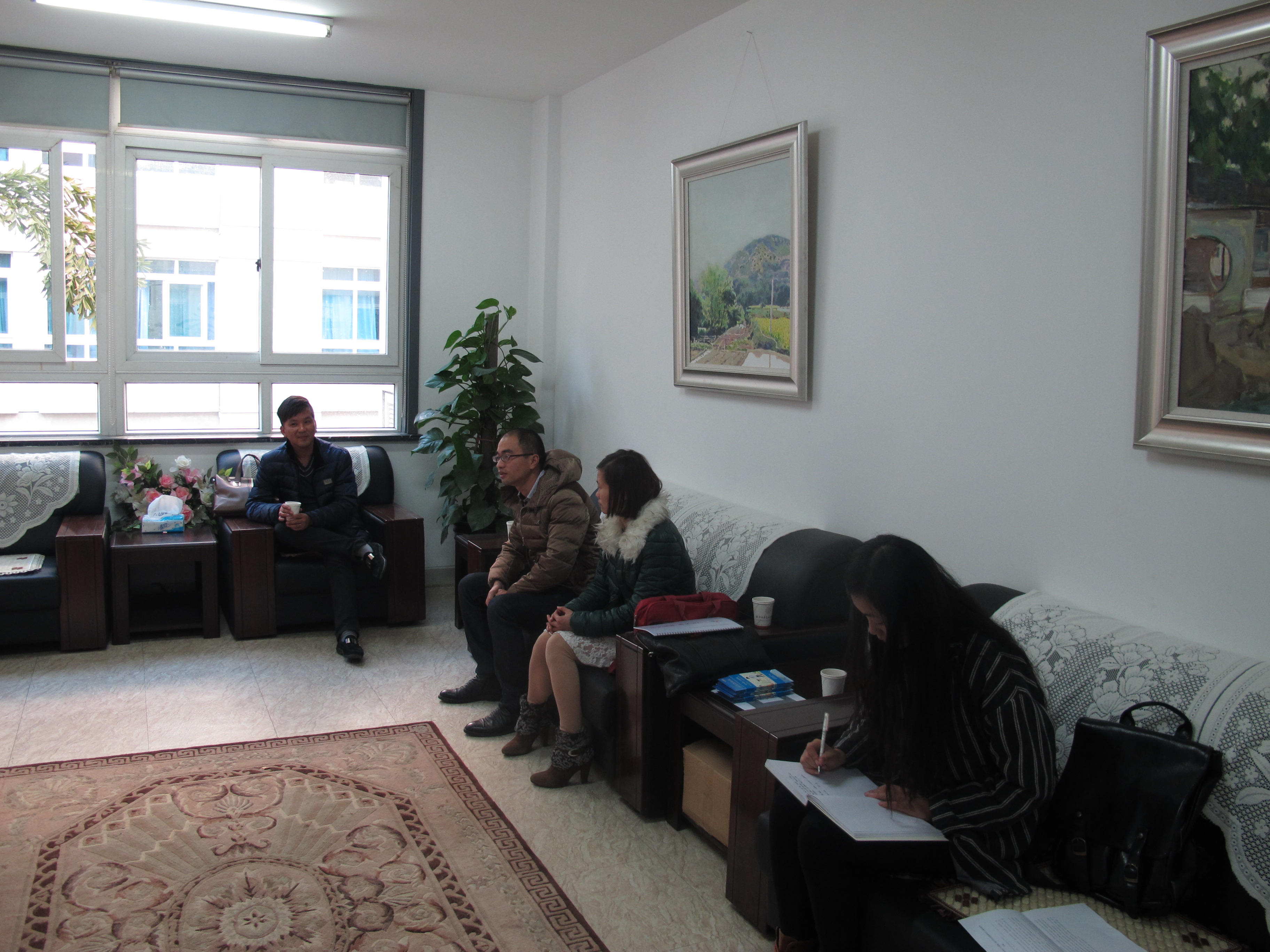 2014年12月30日下午,瑞安市星儿爱心服务社会中心理事长鲍颖女士一行在我校校团委曾国仕老师的陪同下,前往我院与“艺家人”青协进行合作洽谈,亚洲电竞投注平台 党总支副书记杨振海,学生科副科长叶如芳,辅导员杜茜,“艺家人”青年志愿者协会会长冯瑜瑜等参加了此次座谈。会议主要围绕如何加强双方公益志愿的合作而展开。