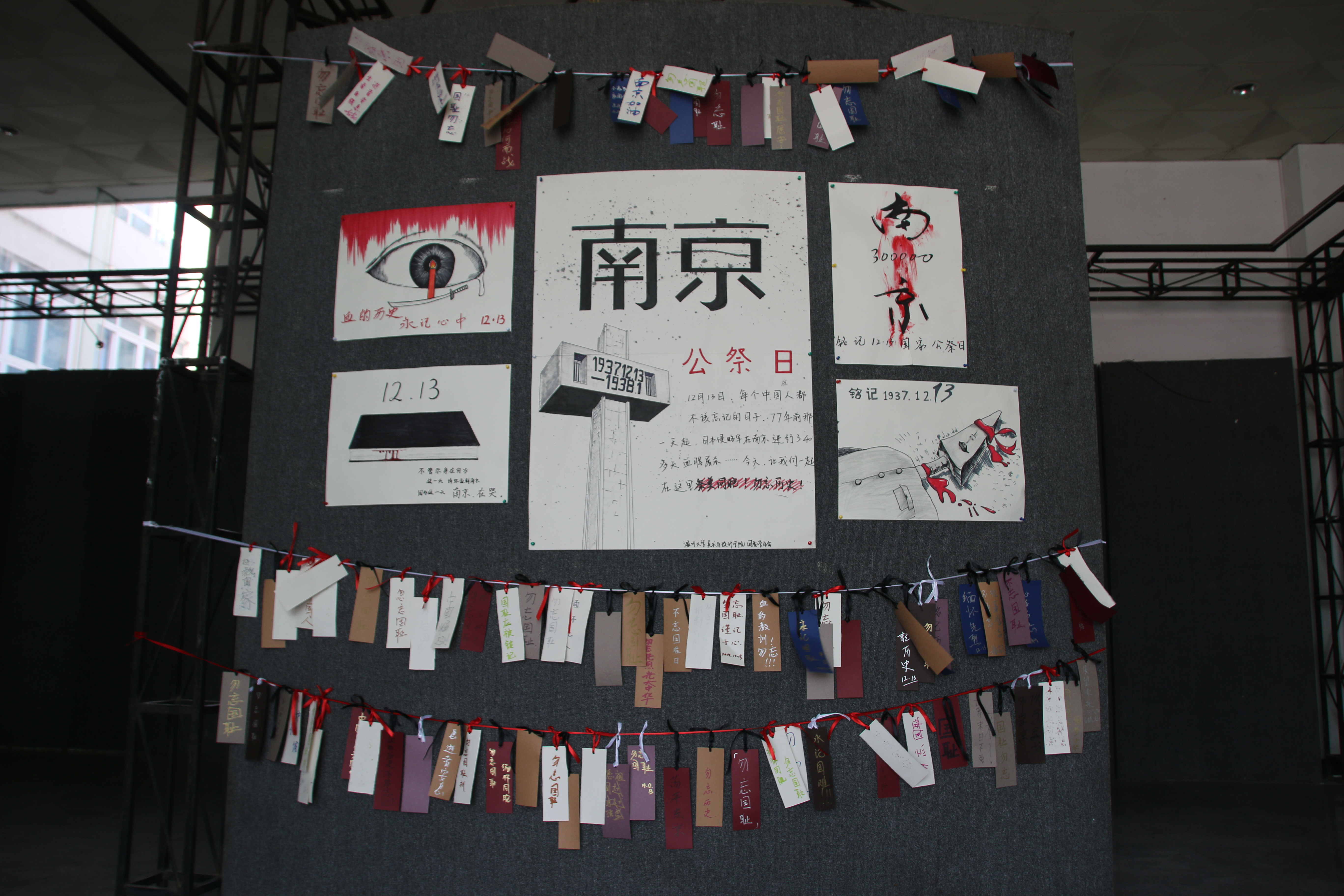 12月13日当天,电竞博彩平台-亚洲电竞投注平台 团委学生会创业就业部与学风纪检部为响应本次国家公祭日,在超豪学区开展举办了祭语公祭悼念活动。本次活动展出了两张手绘悼念大海报及多张手绘宣传公祭漫画,同时开展了温大学子亲手写寄语、挂祭语活动。一同为南京大屠杀遇难人民哀悼,缅怀抗日先烈,勿忘国耻,铭记历史。