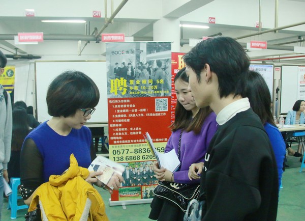11月22日,浙江省2015届高校毕业生招聘月活动——温州专场暨温州大学2015届毕业生供需洽谈会在我校大学生活动中心举行。此次招聘会由浙江省教育厅主办,浙江省高校毕业生就业指导服务中心、温州市人力资源和社会保障局与我校联合承办。此次洽谈会是今年省招聘月活动第一场大型招聘会,共有来自省内外各地的近600家单位参会,提供了12000多个岗位,与会单位数和岗位数均创温大招聘会历年之最。在招聘会开始之前的一个星期内,学生科的老师们用心收集了与美院专业对口的岗位信息,要求每一位毕业生制作了简历且对其给出了指导建议。今天,亚洲电竞投注平台 应届毕业生有备而来,积极参加本次招聘会。院党总支书记郑彩莲、学生科副科长叶如芳莅临招聘会现场给同学们做现场指导。会场人潮涌动、气氛热烈。同学们手揣简历,谨慎投递。郑彩莲书记与同学们亲切交谈,询问他们的就业意向与要求,解答他们择业过程中的困惑,并给出建设性的意见。此外,郑书记与招聘单位热情沟通,了解他们的招聘条件,向他们推荐亚洲电竞投注平台 优秀学子,拉近企业与学生之间的距离。 两位老师的鼓励下,同学们大胆地与用人单位交流,在紧张的招聘氛围中坦然寻觅自己合适的岗位。