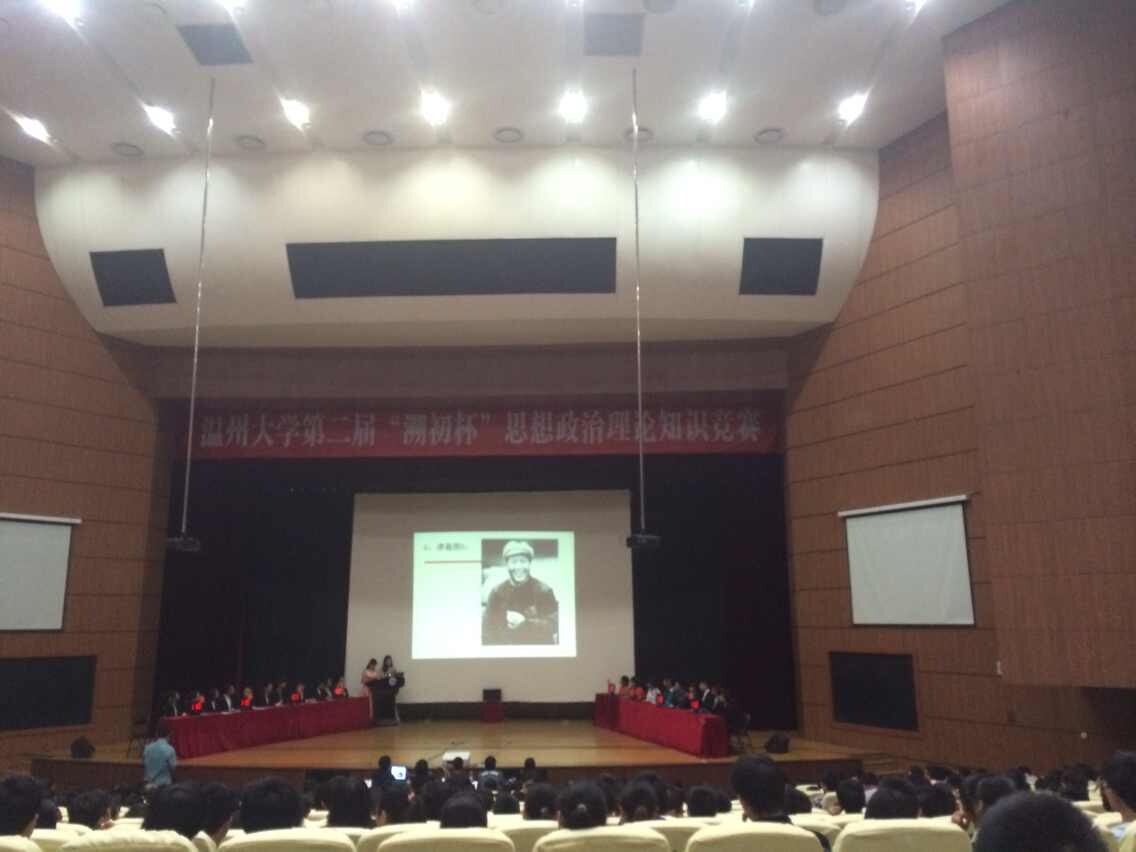 11月26日下午在育英大礼堂举行了温州大学第二届“溯初杯”思想政治理论知识竞赛中,以亚洲电竞投注平台 13服装设计2班的张焕强、13鞋靴设计班的舒宁和王澜组成的学生代表队表现突出,成绩优异荣获一等奖!特此祝贺!