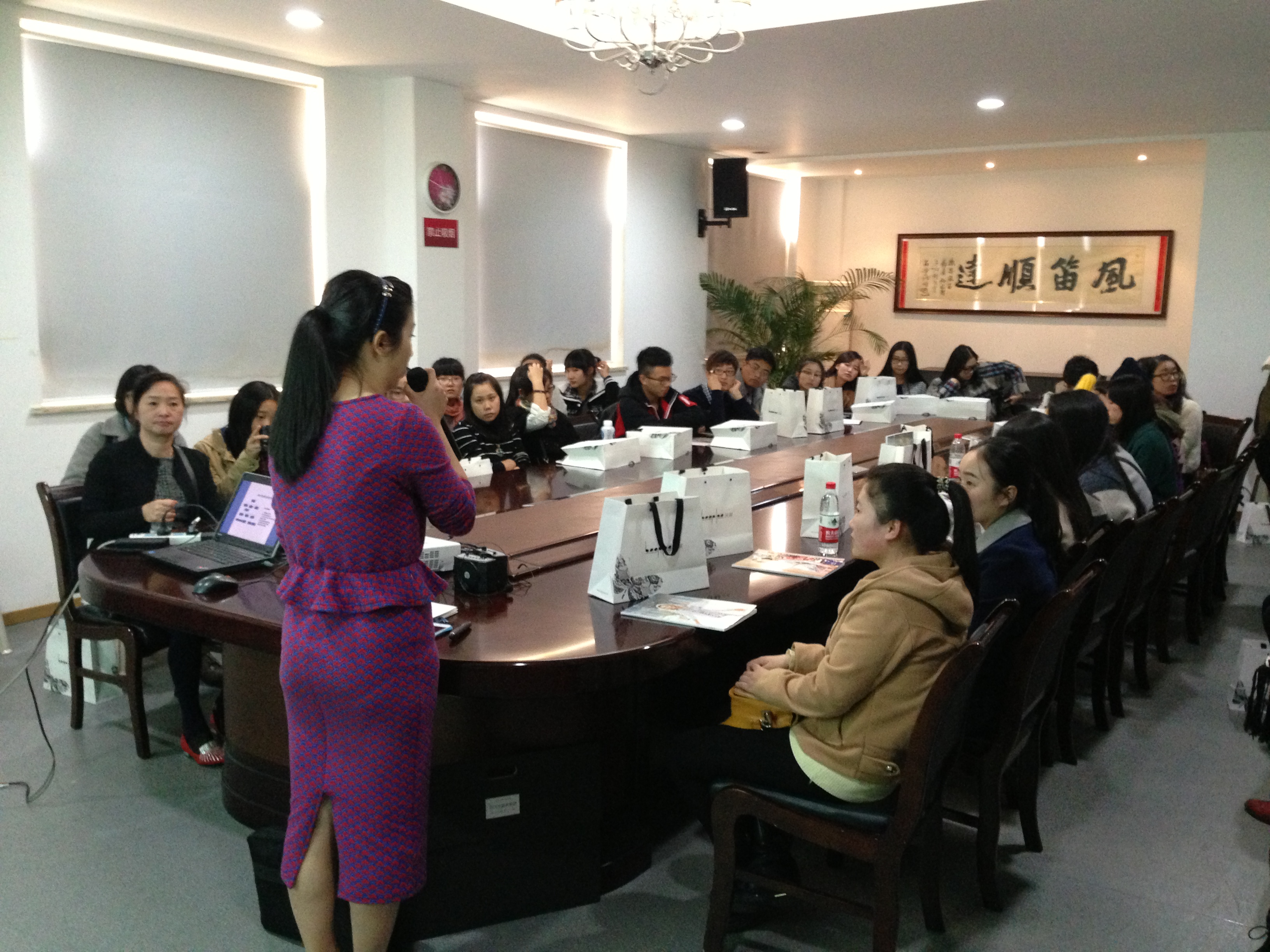 2014年12月1日下午,电竞博彩平台-亚洲电竞投注平台 服装系11级服装艺术设计班的学生、14级服装“卓越”班的学生及11服装“卓越”班的学生,共40人,在服装系陈明艳、叶婷、陈莹和高广明老师的带领下,来到浙江风笛服饰有限公司参观学习。分别针对《服装面料再造》、《企业见习》、《专业实践一》三门课程,校企对接开展企业导师现场授课。 风笛公司做了精心策划和安排了,先是由面料开发部具有多年经验的面料开发的蔡晓萍设计师为学生现场授课,介绍了面料开发部整体架构、各岗位职责、以及有关不同面料性能的简要知识。随后,《服装面料再造》班学生参观了风笛公司面料开发部,并对面料资料室的各种面料挂卡进行翻阅体验和提问交流,学生与企业导师热烈互动。 接着由风笛电竞博彩平台的培训经理针对14服装“卓越”班《企业见习》课程,给学生班介绍企业的整体架构(物控部、财务部、特许部、企业管理部、人力资源部、商品规划部、品牌企划部、女装设计部、女装技术部、童装设计部、童装技术部等)及各岗位职责,并介绍了“风笛幸福家人”电竞博彩平台和“付出、谦虚、反省、感谢、积善、不烦”六项精进的企业精神,此后培训经理带领学生参观公司展示厅、女装设计部和技术部、童装设计与技术部、面料开发部等部门。在展示厅,培训经理介绍新季服装风格,以“蝴蝶+玫瑰花”演绎风笛文化,并鼓励学生选自己喜欢的试穿体验, 14级新生兴奋地试穿风笛新季时尚女装。 同时,11服装“卓越”班的《专业实践一》实践课的4位学生与人力资源部吴朝晓经理对接,分别落实在企划部、面料开发部和女装技术部等,开展为期7周的企业实践学习。 经过近两个小时的校企交流对接,学生满载而归,此次企业导师现场授课活动也圆满拉下帷幕。
