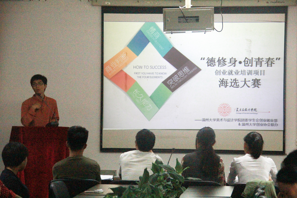 10月18日下午,亚洲电竞投注平台 团委学生会创业就业部和校创业电竞博彩平台 创业协会联办的“德修身&创青春”创业就业培训项目的海选大赛在2B4001拉开序幕。团委副书记金李斌,创业就业部副部长张昇、胡霜霜,研究生代表李艳燕、张娜,共同担任了此次大赛的评委。来自学校不同年级的同学参加了本次海选。 参赛选手热忱地讲出了内心关于创业的想法,并积极与评委或参赛同学进行交流。有的人已有创业经验,有的人怀揣着未实践的“创业梦”。评委们与各位参赛选手密切的交流,分享了自己创业的经验,并且提供建设性的意见。 希望通过德修身&创青春”创业就业系列培训项目可以激发在校大学生的创业活力与激情,增强创业就业能力,在创业路上迈出坚实的步伐。