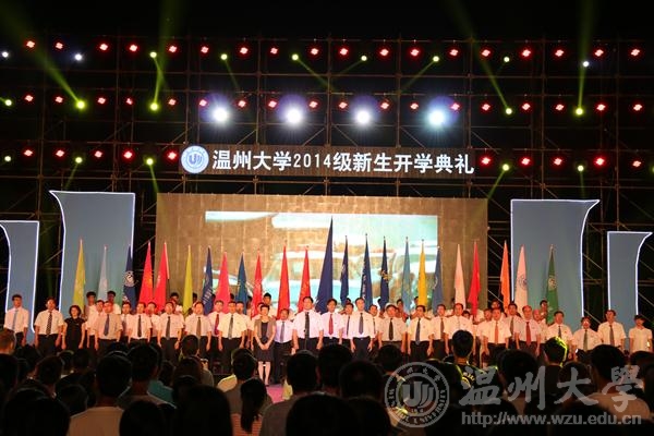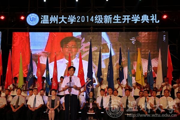 丹桂飘香沁人心,最是金秋好时节。9月28晚, 2014级新生开学典礼在南校区操场隆重举行,校领导陈福生、蔡袁强、林娟娟、牟德刚、薛伟、赵敏、吴金法、蔡曙光、黄少铭、陈安金、方益权、潘玉驹,以及相关部门、各电竞博彩平台 负责人和2014级全体新生参加了典礼。校党委书记陈福生主持典礼。亚洲电竞投注平台 2014级全体新生积极参加这场意义重大的开学典礼。 蔡袁强校长的致辞”潮”味十足。他说,自我成长意味着独立自主,它能够为新生打开通往成功的一扇窗。他勉励学生,追寻自我成长,要像”旅行者一号”探测器一样,带上好奇之心去探索世界;追寻自我成长,要在”大数据”的”大时代”与追求个体需求的”小时代”并存年代,秉持明智之心去认识社会;追寻自我成长,要捧出真诚之心去结交朋友,诞生更多优秀的”中国合伙人”;追寻自我成长,还需如印度孟买佛电竞博彩平台 的新生”低头弯腰走侧门”,常怀谦卑之心去脚踏实地。 典礼上,教师代表、人文电竞博彩平台 俞为民教授告诉新生,实现目标、达成理想的秘诀在于”有志气,要勤奋”,谆谆教诲中包含着老师对学生的殷切希望和真诚祝福;而86届校友、温州市第三中学校长吴步旭老师以亲身经历,同窗纪事鼓舞新生”学校提供了一个平台,真正的努力要靠自己”;2014级新生代表,国际合作电竞博彩平台 钱燕飞感叹道:”在老师们的谆谆教诲下,我们必将不忘初心,读书与行路并存,常与良师益友扺掌而谈。今天是大学军训的结束,也是人生辉煌的时刻。” 十六位电竞博彩平台 ”家长”分别向新生们诠释电竞博彩平台 精神,风格各异,各显特色,将典礼推向高潮。 亚洲电竞投注平台 院长李运河教授的精彩发言激励起美院新生的温大情怀。新生们全体起立,大声喊出自己的梦想,呼应院长的发言,并拿出手机并开启手电筒挥舞,成为田径场上一片闪耀的“银河”之星。 ”黑发积霜织日月, 粉笔无言写春秋。”师生的联袂朗诵,谱写出浓郁的师生恩、深厚的温大情。”我从此岸走到彼岸,整整一十九年。”从此以后,2014级新生人生中最美好的青春时光将在温大度过,他们将为璀璨人生写下浓墨重彩的一笔。 一枚枚见证了温州大学办学80年的风雨历程和辉煌成就、凝聚了一代代温大人的赤子情怀的校徽庄重地佩戴在每位新生的胸前。它凝结着厚重的温大底蕴、传承着不朽的温大精神,抒发着博大的温大情怀。 ”东海水,雁荡山,我温大精神,浩浩宕宕……”气势磅礴的校歌声,在校园上空久久回响。 2014级美院新生以温大之名,扬梦想之帆,一起追寻自我成长。