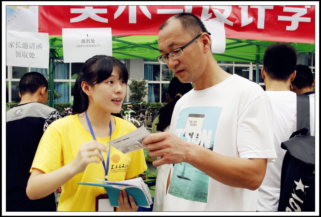 9月18日,电竞博彩平台 、学区布置一新,234位美院新生陆续到来。“向左、向右、向前看”,人生拐了几个弯才遇见美院,且是在这一生中最靓丽的韶华。初到美院,他们遇见的又会是怎样的接待呢?那么就让我们一起走进学长学姐们为新生们准备的盛大的欢迎仪式! 清晨六点,团委学生会成员、党员志愿者就在超豪学区门口摆起了摊子,忙忙碌碌,却有条不紊。一切准备就绪,“万事俱备,只欠东风”,小鲜肉们,学长学姐喊你来美院报到啦! 新生们陆续来了。“陪送团”规模依然庞大,大部分新生都由父母、亲戚陪同而来。“组团式”和“独侠客”也不少见,14服装设计的两位广西的女生就是结伴而行,更有缘的是她们刚好被安排在同一个寝室。不少学生不愿父母陪同,他们认为自己已经足够长大,要学会自理、自立,于是一个人坐着长途客车,离开家乡,来到他们向往已久的大学。 陪同来报到的家长都会收到一份“新生家长见面会”邀请函,这是一次让家长了解电竞博彩平台 ,让电竞博彩平台 了解新生的邀请。一位大二的学生正为学生家长耐心说明家长会的时间、地点和重要意义。在迎新大本营里,他们诚恳地邀请每一名家长。 院党总支书记郑彩莲教授莅临接待现场,慰问服务在迎新工作一线的老生们,协调和处理工作中的问题。她与新生及家长亲切交流,对他们的到来表示欢迎和祝福。 学长们正为小鲜肉们搬行李,瞧,他们热情洋溢的笑容,可见,学弟学妹们的到来对他们来说是多么兴奋的事。家长们被他们的热情服务所感动,称赞美院真是个温暖的大家庭。 遇见美院,遇见梦一样的温暖。亲爱的新生同学们,你们来到这里,等待你们的是美丽宽敞的校园,迎接你们的是亲切热情的学长学姐们,问候你们的是和蔼可亲的领导老师们,从今天起,我们拥有了同一个身份,——美院人。在今后的日子里,你们的梦想将在这里生根发芽,茁壮成长。