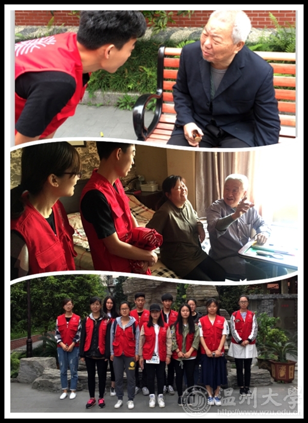 2017年4月23日,温大美院“艺家人”青年志愿者协会与志愿者们共同前往鹿城区名盛老人公寓开展“艺手相约,为爱永驻”敬老活动。因为活动地距离较远,志愿者们坐了一小时左右的公交车又步行了一会儿后才到达了活动的目的地。路程虽然很劳累,但是志愿者们踏进公寓时受到了公寓负责人的热情接待和老人们的热烈欢迎。在稍微了解活动安排后,接着便是志愿者们分散和老人们聊天,志愿者们一半靠猜测、一半靠会温州本地方言的同学们翻译去同他们交流、畅谈。看的出,他们都很用心对待着这些素不相识的亲人们。在陪老人们聊了一会儿天后,负责人带领志愿者们对公寓进行了消防检查并以让志愿者们了解消防知识。这次敬老活动,不仅丰富了大学生们的校园文化生活,同时也践行了奉献、友爱的志愿服务精神。虽然作为大学生的我们能力有限,但是我们的爱心无限,我们用微薄的力量给予老人们更多的关爱,帮他们解除了内心的孤单与寂寞。此外,我们也真实的感受到了爱的真谛,尊老爱幼是中华民族的传统美德,我们作为当代大学生将会继续传承这种美德,共筑温暖社会。最后,衷心的祝愿老人们身体健康、长命百岁,让我们携手为他们带来温暖与关怀吧。图/文:王 伟朱灵睿鲍彬彬