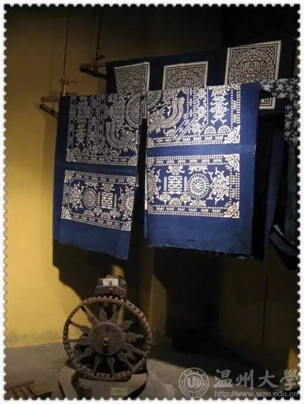 温州市非物质文化遗产馆分为瓯海馆,龙湾馆,鹿城馆,乐清馆,瓯窑馆和温州“三瓯”区等。瓯窑,瓯绣,瓯塑便是有名的温州三瓯,我们还观摩了木活字印刷使用的模板,浙江“三雕”之一的黄杨木雕,还有细纹刻纸等等令人惊叹不已得非遗工艺品。最令人惊叹的要数首饰龙了。首饰龙其实是一艘龙形的大船,前有龙头,后有龙尾,龙身是摆放了许多人像雕塑的楼阁。非遗馆里的首饰龙可以接通电源,寂静的庞然大物在通电的一瞬间突然活了过来,通体光亮,里面的人物开始移动,龙尾摇摆,令大家惊叹不已。参观结束后,副队长还组织了“寻找你心中最美的‘非遗’作品”的活动。我们全队共分为五组,分别去拍摄一张非遗作品的照片。然后,各组通过抽签交换拍摄的照片,并根据照片在规定时间内去寻找实物,在寻找出作品的同时也增加了大家对于工艺的热爱。