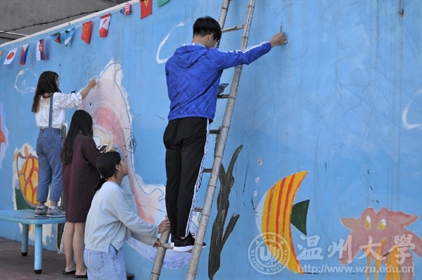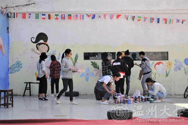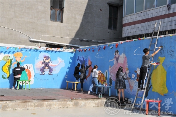 2017年10月29日,电竞博彩平台-亚洲电竞投注平台 “艺家人”青年志愿者协会前往白门侨星幼儿园开展了墙绘活动。志愿者们经过大半个小时的车程终于到达终点站,踏入幼儿园发现,它并没有想象中那么现代化,墙上是被太阳曝晒过的稚嫩童画。刚到那里,志愿者们便开始着手准备,将颜料摊在地上,打水,洗笔……,有条不紊地进行着。随后每个人开始选自己要画的卡通人物,由于园长告诉我们,这是孩子们跳舞的场地,所以志愿者们也跟着主题走,上网搜集了许多可爱的卡通舞者,选好之后,二话不说就动起手中的水粉笔开始绘画,志愿者们先用铅笔打稿,用黑色颜料勾线,再上色。不一会儿,肉色的皮肤,粉红的裙子,精美的发饰,优雅的舞姿等便在蓝色的墙面上显现出来了。志愿者们大肆挥舞画笔,用嫩黄和天蓝颜色打底,在太阳底下让人看了温暖极了,太阳也愈演愈烈,志愿者们的头上也开始出现汗珠。上午的时间飞快地流逝,吃过饭后小憩一会,志愿者们便接着干活,同时又把墙面整体地刷了一遍,更突出了人物,再加上一些花花草草的点缀,整个围墙都漂亮醒目了起来。园长十分开心,志愿者们也很欣慰。快结束的时候,还有这边的上级领导来视察,夸奖了我们志愿者的工作成果,也给了一些有用的建议。本次活动开展的目的在于给幼儿园的小朋友们增添不一样的色彩,让他们在一个多彩地小世界里快乐成长、快乐学习,同时也锻炼了志愿者们自身的耐心和技巧,肯定了我们温大人的能力。此次活动让志愿者们收获了很多,早已疲惫的身体里面却是满满的幸福,虽然做的不多,但志愿者们把自己所学到的知识都应用起来了。同时,也希望我们志愿者点点滴滴的行动可以对社会的其他人带来感想,让越来越多的社会人士开始关怀心中的点点滴滴,给予需要帮助的人更多温暖!图/文:金 哲罗会慧董 悦