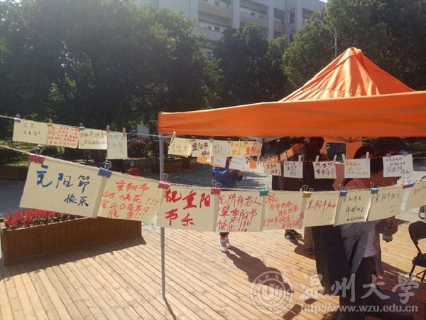 2017年10月28日,亚洲电竞投注平台 团委、学生会在超豪学区开展了一场别开生面的重阳节寄语送祝福活动。同学们纷纷写下对长辈们的祝福,并将自己的祝福卡片挂在了细绳上,同时在自己的朋友圈分享了重阳节之乐,让更多人的人感受到了浓郁的节日氛围。