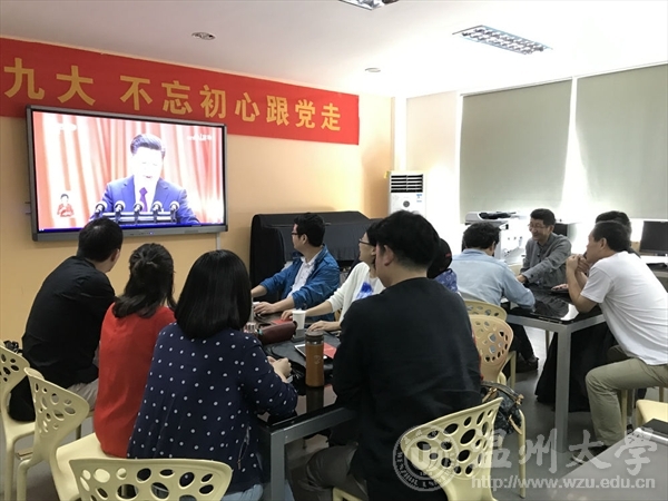 10月18日上午,举世瞩目的中国共产党第十九次全国代表大会在北京人民大会堂隆重开幕。美术与设计电竞博彩平台 组织教工党员和研究生党员齐聚电竞博彩平台 2-103教室集中收看十九大开幕式直播盛况。 在收看过程中,师生党员反响强烈,纷纷热议,大家用热烈的掌声表达对习近平总书记报告的一致赞许。 美术支部书记陈旭海提到“习近平总书记在报告中指出,科学社会主义在21世纪的中国光芒四射,有中国特色的社会主义道路是社会主义理论的实践验证,特别是对于我们文艺创作者来说,弘扬中华优秀传统文化和社会主义核心价值观,高举主旋律文艺创作的旗帜,为我们指明了创作方向”。 设计支部书记顾任飞表示:习近平总书记在报告中指出,青年兴则国家兴,青年强则国家强,青年一代有理想、有本领、有担当,国家就有前途,民族就有希望。作为高校教师,我们要牢记总书记的教诲,要做学生锤炼品格的引路人,做学生学习知识的引路人,做学生创新思维的引路人,做学生奉献祖国的引路人,努力培养具有坚定理想信念,志存高远,脚踏实地的合格接班人。 服装支部书记叶茜感慨到“‘永远把人民对美好生活的向往作为奋斗目标’,习近平总书记的报告,字字句句,说到了我们心坎上!特别是习近平总书记指出的新时代中国特色社会主义思想,让我们对中国社会的未来发展充满期待!作为时尚温州的一分子,我们服装更是要发挥重要的角色投入到这新时代的中华民族伟大复兴之中。” 行政教工支部书记李丽谈到:“习近平总书记在讲话中对教育事业和文化建设作了深刻阐述,从智库建设、文化体制改革、文化发展道路、中华文化以及文艺工作等方面为新时期文化建设指明方向。作为高校艺术学科行政工作者,我们要牢牢把握教育教学规律,更要紧密把握教育、文化发展的新动态、新契机,更好地为艺术学科的教学科研和人才培养做好服务。” 研究生支部书记陈美龄表示:“观看十九大开幕式之后,作为学生党员,作为中华儿女中的年轻力量,我们更要在学习党的理论、方针、政策的同时,不断提高自己的党性修养,并努力创新,给党和国家发展注入青春力量的新鲜血液。” 通过观看十九大直播,师生党员自信心倍受鼓舞,纷纷表示要以学习习近平总书记十九大重要讲话精神为契机,振奋精神,不忘初心,牢记使命,立德树人,以坚定的信念和务实的态度为学校改革发展和建设事业贡献青春力量。