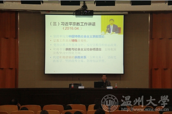 12月13日下午,亚洲电竞投注平台 在雁山厅开展本学期第二次形势与政策课,温州大学马克思主义电竞博彩平台 党总支书记王柏民作题为“马克思主义宗教观解读”的形势与政策讲座,亚洲电竞投注平台 17级全体同学参加讲座,讲座由美院党总支副书记杨振海主持。 王柏民书记从马克思主义宗教观的哲学基础、基本内容、中国化三个方面进行解读。王书记指出,21世纪宗教发展趋势呈现四个特点,一是全球信教人口比例快速下降;二是极大主流宗教的信徒人数持续增长;三是宗教的国际化格局持续变化;四是宗教的国际影响持续变化。他还指出,我国信教比例相对较低,但整体趋势上呈现“宗教过热”的现象,具体表现为宗教渗透、分裂活动、违法活动以及宗教矛盾。 随后王柏民书记对马克思主义宗教观做详细阐述:按照唯物史观,宗教是思想上层建筑中的一个组成部分,宗教有其存在的经济基础。马克思、恩格斯认为:宗教是颠倒了的世界观,一切宗教都不过是支配着人们日常生活的外部力量在人们头脑中的幻想的反映,在这种反映中,人间的力量采取了超人间的力量的形式。关于宗教的根源和宗教的消亡,马克思在《资本论》中说“……只有当实际日常生活的关系,在人们面前表现为人与人和人与自然之间极明白而合理的关系的时候,现实世界的宗教反映才会消失,……这些条件本身又是长期的、痛苦的历史发展的自然产物”,恩格斯在《反杜林论》中也提到“取缔手段是巩固不良信念的最好手段”。因此对于宗教要避免两种倾向:一是将宗教与社会主义、共产主义混为一谈;二是以行政命令消灭宗教。 如何处理宗教问题?王柏民书记提到,2016年4月习近平总书记关于工作的讲话提出:坚持和发展中国特色社会主义宗教理论,实施宗教信仰自由政策,积极引导宗教与社会主义社会相适应,构建积极健康的宗教关系。十九大报告中指出,要全面贯彻党的宗教工作基本方针,坚持我国宗教中国化方向,积极引导宗教与社会主义社会相适应。党的宗教工作基本方针即“四句话”:全面贯彻党的宗教信仰自由政策、依法管理宗教事务、坚持独立自主自办原则、积极引导宗教与社会主义社会相适应。 最后,王柏民书记总结道:“宗教是社会文化现象,是对现实世界的虚幻反映,我国在政策方面尊重信仰自由,引导宗教与社会主义社会相适应,构建积极健康的宗教关系,推进宗教工作法制化;作为有理想有信念的大学生,特别是共产党人、共青团员要做坚定的无神论者,决不能在宗教中寻找自己的价值和信念。”