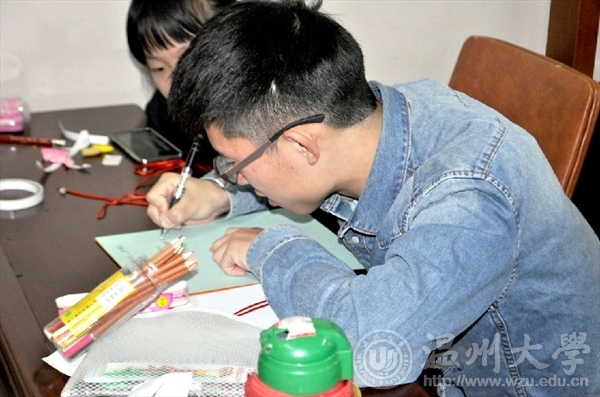 2017年12月9日,亚洲电竞投注平台 “艺家人”青年志愿者协会成员以及志愿者们准时来到了梅泉社区文化礼堂,进行了主题为“春节”的志愿活动。秦佳敏同学向小孩子们提问问题“春节有哪些习俗呢?”有的孩子说放鞭炮、贴对联、画福字,收红包……没错,还有挂中国结。中国结的编制没有那么简单,尽管步骤告诉大家,但一开始志愿者们和孩子们都连连“诉苦”难度太大,但不过一会儿还是有心灵手巧的志愿者学会了,并且还教别的志愿者打结,虽然中国结做的不太完美但代表着团结幸福平安的意义却丝毫没有减少。明年是狗年,当然少不了教孩子们画可爱的狗狗,孩子们为自己画的狗狗涂上了颜色还为它画了一个小房子。最后是写祝福语的环节,孩子们依旧很用心地给自己的爸爸妈妈写上祝福,有的写的是“爸爸妈妈你们辛苦了”,有的是“我爱你们”……字里行间流露出了对爸爸妈妈浓浓的爱意。