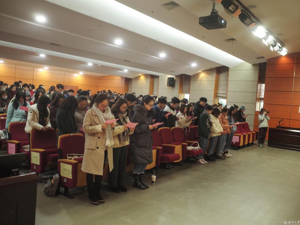 2018年1月10日下午,亚洲电竞投注平台 在雁山厅召开2017-2018学年第一学期考风动员大会,亚洲电竞投注平台 党总支书记张丽萍、副院长谢子静出席大会,17级全体同学参加会议,大会由电竞博彩平台 党总支副书记杨振海主持。 张丽萍书记在动员讲话中重申了考风考纪的重要性和作弊的危害性,她强调学习在于平时的点滴积累,来不得弄虚作假,作弊不能弥补学习上的漏洞,而是一种自欺人人的行为。张丽萍书记还鼓励同学们认真备考,争取考出好成绩。她强调:“大学里的每一次考试都是接受考核认证自我的途径,加强考风建设营造公平的考试氛围,既是每个同学的愿望也是每个同学应该肩负的责任。所以希望同学们在这次考试中能诚信做人,亮出真实的成绩,展现真实的自己。”杨振海副书记根据学生手册相关条例告诫同学们一定不能碰这个底线,在考试过程中不仅仅要交出反映专业知识水平的考卷,更重要的是在考试中要交出诚信的品行之卷。 17级全体同学在学生代表的引领下宣誓,承诺端正考试态度认真复习积极备考。 学生处吕乐老师进行大学生文明修身考风考纪专题讲座。学生处吕乐老师通过精彩的演讲和亲切的互动,加深了同学们对考试作弊的危害的理解,相信同学们也一定会用真实的成绩证明自己的实力,成为一名诚实守信的大学生。 大会还总结了本学期学风考勤和晚自习考勤情况,与会领导对本学期优秀纪检委员进行了表彰。