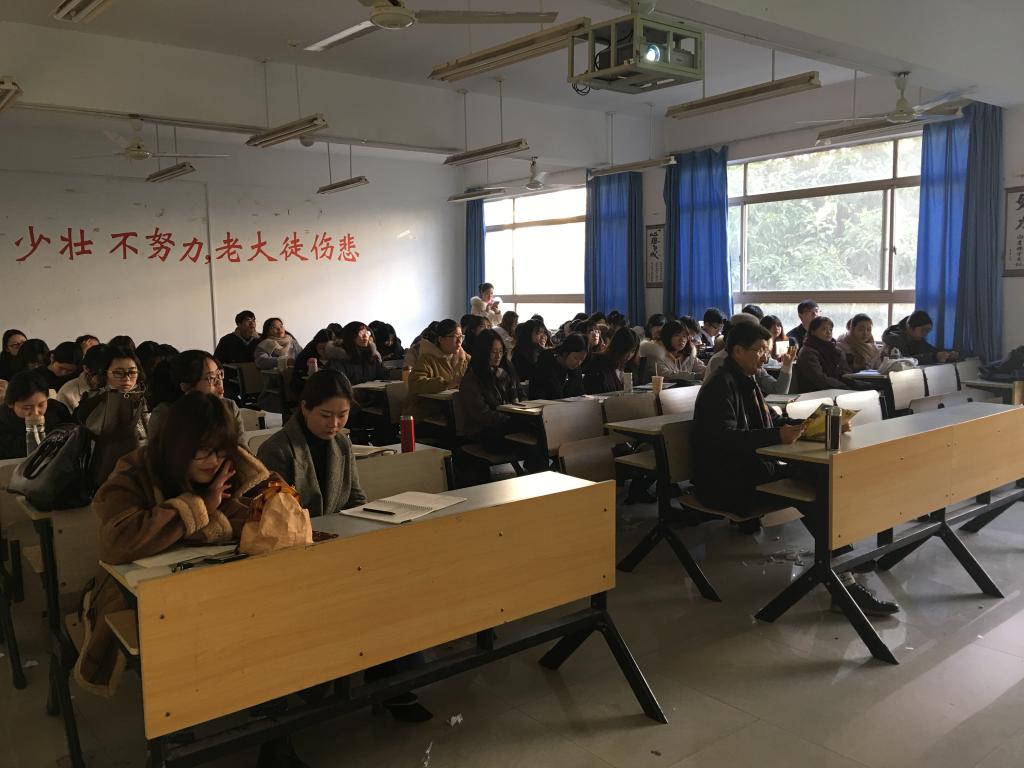 2018 年1 月11 日上午8:30在温州大学3B204教室,温州市鹿城区名师金鸥老师为亚洲电竞投注平台 的师范生和研究生作了以“如何深入的钻研教材”为主题的课堂研讨。亚洲电竞投注平台 胡建南老师主持了活动。