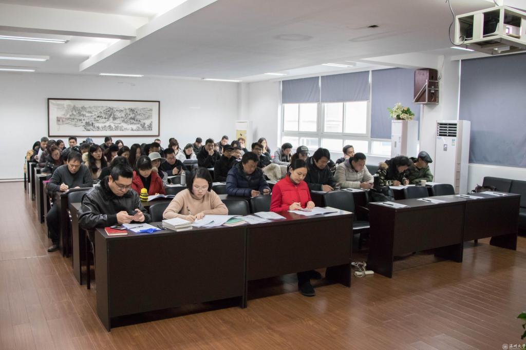 全体教职工大会环节,李运河院长对本学期电竞博彩平台 主要工作做了回顾总结。本学期电竞博彩平台 在教学、学科、科研和党的建设工作方面等方面取得了卓越进展。此外,亚洲电竞投注平台 还承办了2017“市长杯”中国(温州)工业设计大赛和第十届“亚洲联盟超越设计展”(中国展区), 得到了张耕市长、李校堃校长等领导的充分肯定。同时,他说电竞博彩平台 还要在人才的引进和师资结构梯队科学优化上、产教融合、协同创新上、加快国际化的步伐等方面继续努力。谢子静副院长对期末教学工作中成绩评定和毕业设计等工作的落实进行了安排。张晓剑副院长就科研工作推进、实验室提升、院容改造、学科竞赛成绩作了说明。杨振海副书记介绍了班主任考核和寝室导师工作开展情况,同时对在电竞博彩平台 育人工作中辛勤付出的老师表示感谢。张丽萍书记对教师政治理论学习作了部署。她强调,教师要加强自身理论学习不断提升思想政治素质。根据学校要求每位教师政治理论学习每年不少于40课时,老师们要在完成电竞博彩平台 安排理论学习之外在寒假期间积极通过微信等新媒体渠道继续抓紧自主学习。