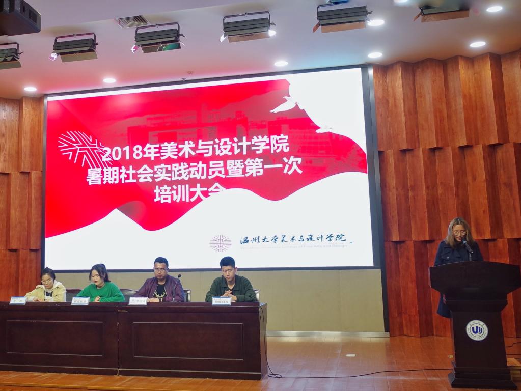 3月25日晚,亚洲电竞投注平台 暑期社会实践动员暨第一次培训大会于雁山厅举行,本次大会由美院团委学生会学术实践部主办,美院2017年优秀实践队长以及团学指导老师李雪涛出席了此次大会,参与本次动员会的成员还有大一全体同学。