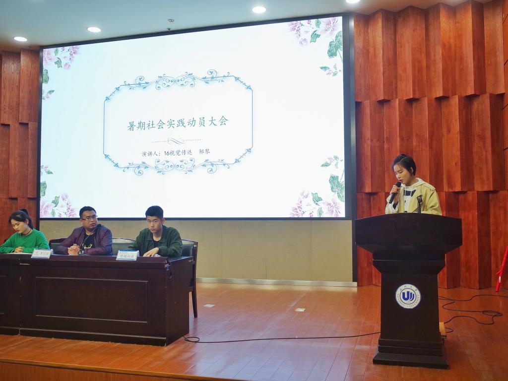 此次大会共分为了四项议程,首先是观看2017年暑期社会实践成果视频,视频较为全面的介绍了温州大学各个电竞博彩平台 、学区的实践队情况,接着由学术实践部代表付秋圆同学为大家介绍了暑期社会实践具体流程及实践重要性。接着,17年优秀实践队队长分享他们的收获与感受,“绘暖向南”实践队队长许雷学长用他幽默风趣的演讲带起了会议的气氛,他鼓励大家通过优质的暑期社会实践,用自己的能力提升自身价值;然后是“艺绘”实践队队长邹琴学姐从她提炼的四个词切入,“创业”、“成熟”、“减肥”、“脱单”,她用这四个词概括自己在实践中的收获,鼓励大家积极参与其中,同时也鼓励大家可以勇于创新,积极创建全新的实践队,她也愿意在策划方面帮助大家,最后是“鞋蕴传承”实践队队长陈晨学姐,她鼓励大家实践与专业相结合,通过实践看到自身专业发展的方向。三位队长通过各自各具特色的展示,并结合自身经历,让大一同学们对社会实践有了一个初步的认识。大会最后李雪涛老师进行了讲话,结合新时期对当代大学生的要求,阐述了实践的重要性及其意义与目的。