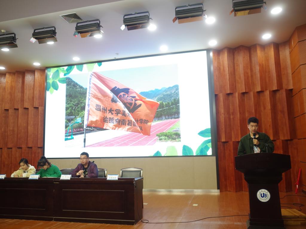 3月25日晚,亚洲电竞投注平台 暑期社会实践动员暨第一次培训大会于雁山厅举行,本次大会由美院团委学生会学术实践部主办,美院2017年优秀实践队长以及团学指导老师李雪涛出席了此次大会,参与本次动员会的成员还有大一全体同学。 此次大会共分为了四项议程,首先是观看2017年暑期社会实践成果视频,视频较为全面的介绍了温州大学各个电竞博彩平台 、学区的实践队情况,接着由学术实践部代表付秋圆同学为大家介绍了暑期社会实践具体流程及实践重要性。接着,17年优秀实践队队长分享他们的收获与感受,“绘暖向南”实践队队长许雷学长用他幽默风趣的演讲带起了会议的气氛,他鼓励大家通过优质的暑期社会实践,用自己的能力提升自身价值;然后是“艺绘”实践队队长邹琴学姐从她提炼的四个词切入,“创业”、“成熟”、“减肥”、“脱单”,她用这四个词概括自己在实践中的收获,鼓励大家积极参与其中,同时也鼓励大家可以勇于创新,积极创建全新的实践队,她也愿意在策划方面帮助大家,最后是“鞋蕴传承”实践队队长陈晨学姐,她鼓励大家实践与专业相结合,通过实践看到自身专业发展的方向。三位队长通过各自各具特色的展示,并结合自身经历,让大一同学们对社会实践有了一个初步的认识。大会最后李雪涛老师进行了讲话,结合新时期对当代大学生的要求,阐述了实践的重要性及其意义与目的。 此次暑期社会实践大会在很轻松愉悦的氛围中度过。通过这次大会各学生能够更清楚的了解暑期社会实践的基本情况,相信通过这次大会的召开,各学生能积极认真负责的参加暑期社会实践活动。