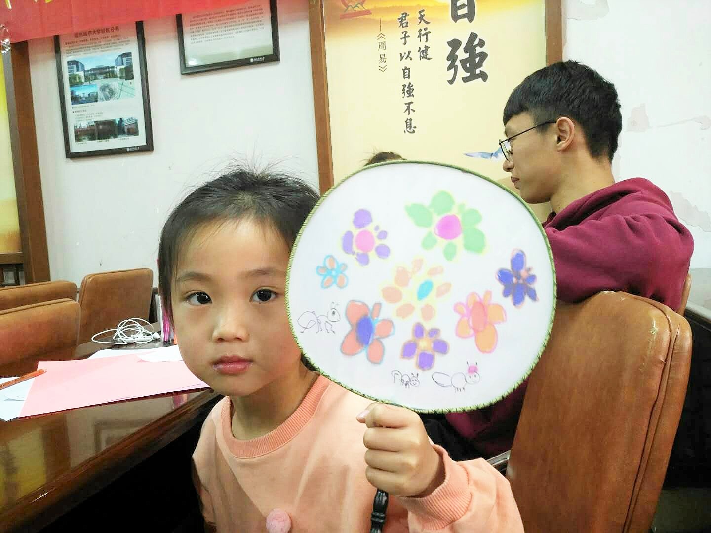 2018年5月5日,温大美院“艺家人”青年志愿者协会的志愿者们准时来到了梅泉社区文化礼堂,进行了主题为“绫绢扇制作”的志愿活动。 随着夏日逐渐来临,女孩子穿着美丽的小裙子,男孩子穿着酷酷的短裤,朝气蓬勃,活泼可爱,所以决定让小朋友们画一把自己心仪的小扇子来解决炎热。小朋友们入座之后便开始了今天的活动。小朋友们挥动着画笔,用绿色的水笔画出草地、红色的水笔画出太阳……一举一动都无不体现着他们的兴奋,由一把把空白的扇子变成了丰富多彩各色各异的扇子。紧接着是剪纸和自主绘画活动环节,运用曾经学过的绘画知识和手法,在一张白纸上,画出了不一样的风景。随着创作的结束,今天的梅泉支教活动也告一段落。 扇文化有着深厚的文化底蕴,在舞蹈作品中扇子也有不同的象征意义。扇画在明朝是文人个性癖好的体现,于尺幅之间寄托无限情谊,遂成为文人雅士的必备之物,久而成为一种风俗,延续至今。今天的梅泉支教主要让小朋友们以自己的心意绘画扇子,让他们接触到这一类的文化,了解扇子的奥秘,也让中国优秀传统文化得以传承。
