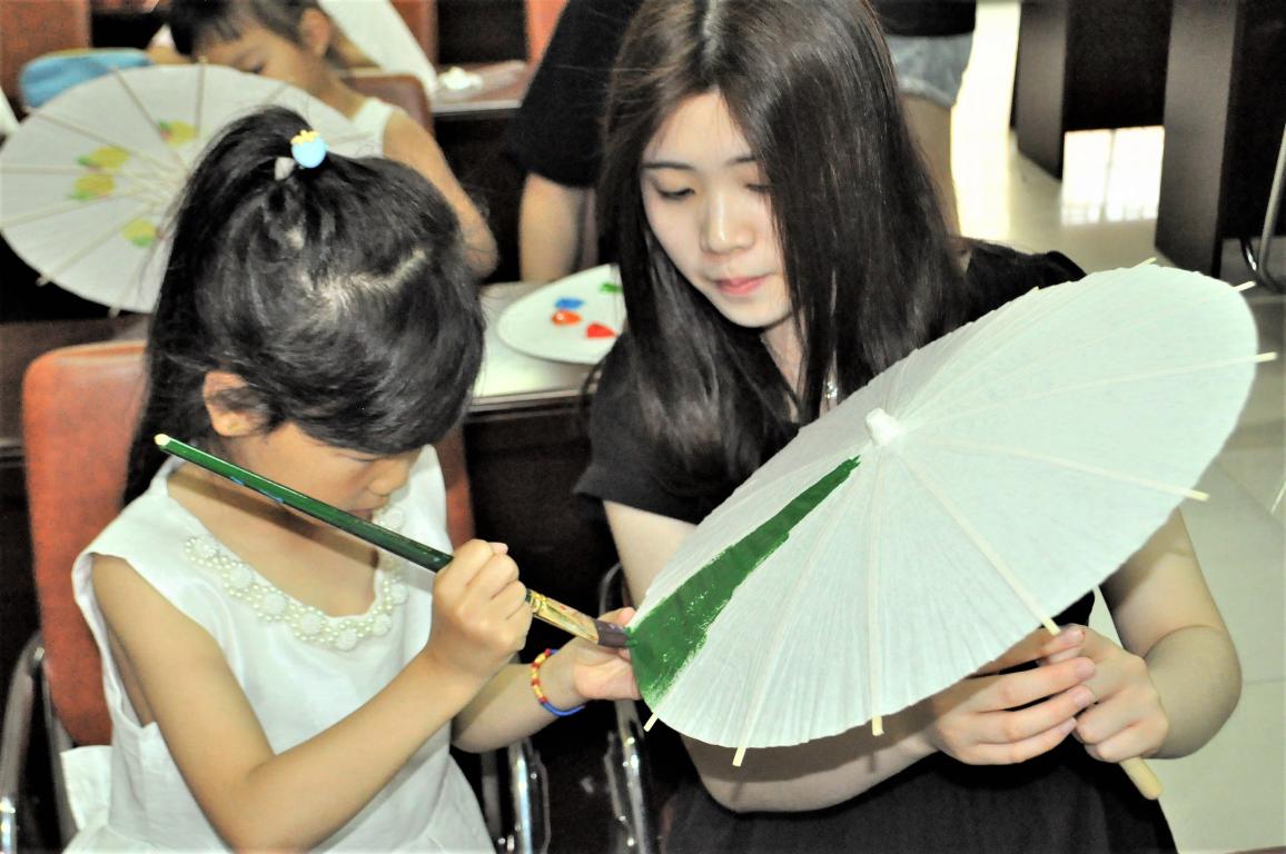 5月19日,温大亚洲电竞投注平台 “艺家人”青年志愿者协会的志愿者们如期来到了梅泉社区文化礼堂,进行了主题为“伞上书画”的志愿活动。