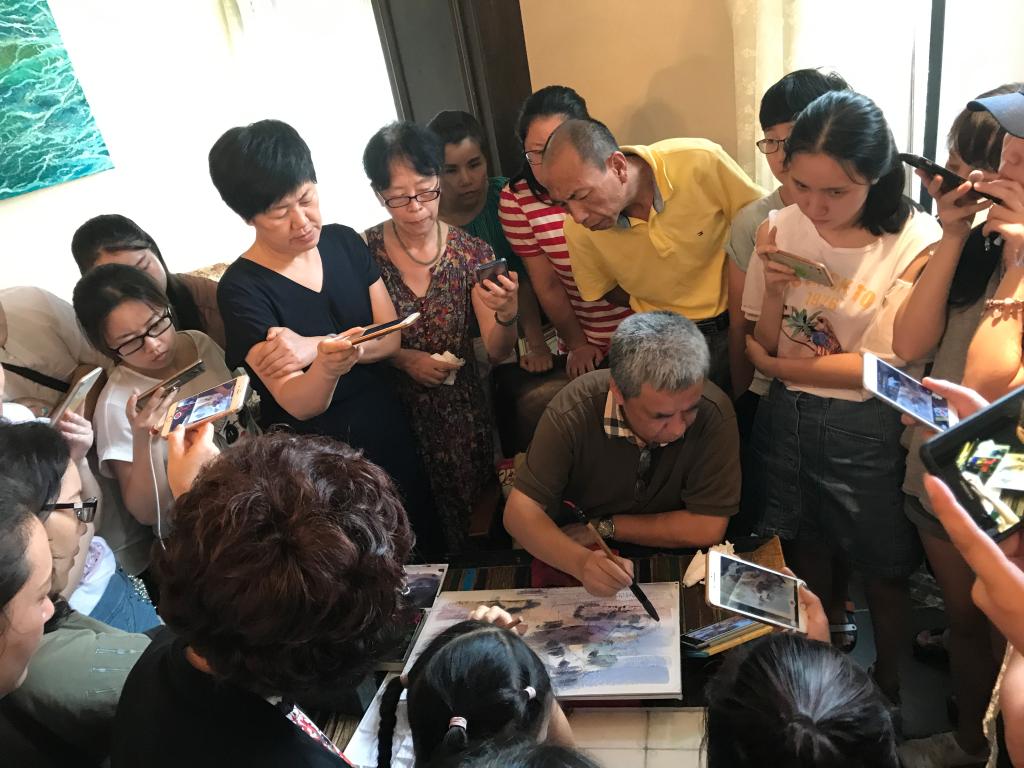 7月1日下午,在温州市图书馆朴念文化客厅“籀园讲坛”再次迎来电竞博彩平台-亚洲电竞投注平台 由电竞博彩平台-亚洲电竞投注平台 主办的“传统文化与时尚生活”系列主题之八“走近水彩,了解水彩,快乐水彩”讲座,讲座由亚洲电竞投注平台 李利民老师主讲。现场加座后仍座无虚席,李老师幽默风趣的演讲风格,观众的热情洋溢,使得现场氛围持续保持着热烈与活跃。
