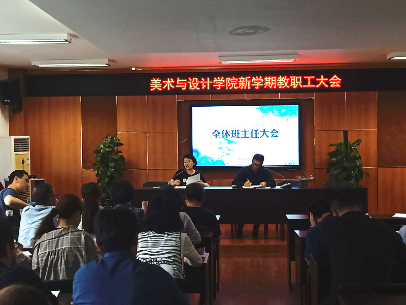 9月12日下午,美院2018-2019学年第一学期班主任工作会议在2B4001召开。电竞博彩平台 党总支副书记杨振海、学生科叶筱卉老师和电竞博彩平台 全体班主任老师参加了会议。