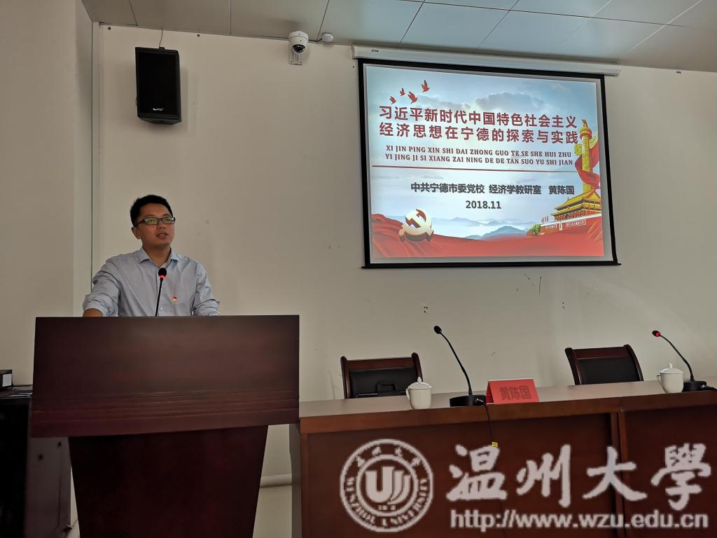 在全国上下深入学习宣传贯彻习近平新时代中国特色社会主义思想和党的十九大精神的大好形势下,2018年11月8日,电竞博彩平台-亚洲电竞投注平台 党员学习习近平新时代中国特色社会主义思想专题培训班在宁德市委党校举办。 开班仪式由亚洲电竞投注平台 党总支副书记杨振海主持。宁德市委党校经济教研室黄陈国老师向来自温州大学的同志们表示了热烈的欢迎,并介绍了宁德市情和市委党校的情况。亚洲电竞投注平台 党总支书记张丽萍做了开班动员讲话,明晰了三个问题,即:为什么要走出去学习?为什么来宁德学习?党性学习的目的和作用是什么?并对全体党员提出了新时代的学习要求和新时期的党建要求:严于律己,严守党的组织性和纪律性。进一步推动亚洲电竞投注平台 党组织把学习宣传贯彻党的十九大精神引向深入。 黄陈国以《习近平新时代中国特色社会主义经济思想在宁德的探索与实践》为主题做了一场生动的报告。他从五个方面系统讲述了习近平新时代中国特色社会主义经济思想在宁德如何探索、如何实践,即“五个一以贯之”。一、从经济大合唱,到党的集中统一领导(经济工作的根本保证一以贯之);二、从处理闽东经济关系,到完善宏观调(政府服务与市场理念一以贯之);三、从走大农业的路子,到乡村振兴战略(人民中心的根本立场一以贯之);四、从森林“三库”理念,到推进绿色发展(人与自然的和谐共生一以贯之);五、从滴水穿石精神,到稳中求进的策略(正确的经济工作方法一以贯之)。报告中融入了习近平主席在宁德工作期间的宝贵资政财富:深入基层,探索落后地区摆脱贫困的历史课题,倡导“滴水穿石”的奋斗精神、“弱鸟先飞”进取意识。 党员们在认真听取了精彩的报告后,为习近平主席心系民众的百姓情怀、铁腕治吏的廉政作风所感动,更加深刻体会了习近平新时代中国特色社会主义经济思想:“观大势、谋全局、干实事”。此次培训学习,是亚洲电竞投注平台 学习宣传贯彻党的十九大精神的重要举措,党员们收获颇多,纷纷表示将会把学习的成果转化为推动工作的动力,发挥党员先锋模范作用,为推进教育事业的发展添砖加瓦。