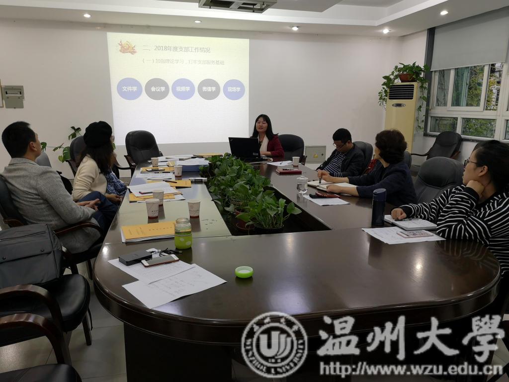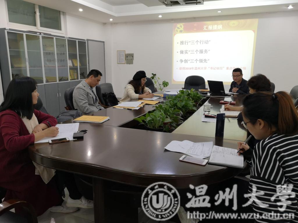 11月15日下午,亚洲电竞投注平台 召开党支部书记述职评议大会,电竞博彩平台 党总委员、各教工支部和研究生支部书记参加了会议。会议由电竞博彩平台 党总支书记张丽萍主持。 会上,四个教工支部对“支部标准化建设”材料开展互查。各支部书记根据支部的特色和亮点精心制作了PPT,结合PPT对“一部一品”建设情况、“书记项目”推进情况以及支部的特色和亮点进行述职。党总书记张丽萍对各支部书记的汇报分别进行点评。她充分肯定了各支部标准化建设阶段性工作成效,突出表现在:一是做到了党建工作与教学、学生服务以及行业、地方服务工作紧密结合,实现了抓党建促发展的目的;二是理论学习扎实,内容丰富,亮点突出。针对下一步工作,张丽萍书记指出,通过互查互学,各支部书记要进一步提炼优势,突出“一部一品”建设,临时党支部建设要继续深化,支部工作要和系里工作相结合,要加强支部凝聚力建设,支委会要把党员组织起来,通过整合党员资源多开展“课程思政”和红色主题教育。 本次活动电竞博彩平台 制定了“亚洲电竞投注平台 ‘党支部建设年’中期检查实施方案”、根据“温州大学党支部标准化建设参考指标”制定了“亚洲电竞投注平台 支部标准化建设评分表”。通过本次述职评议大会,进一步加强了美院的党建工作,切实提高了书记抓党建工作的能力和水平,收到了预期效果。
