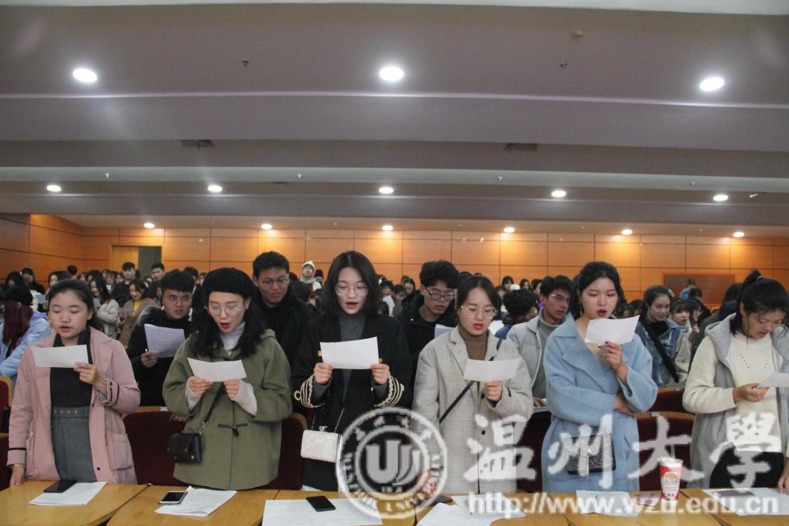 12月26日下午,亚洲电竞投注平台 2018-2019学年第一学期期末考风动员大会在雁山厅举行。参加本次会议的有亚洲电竞投注平台 党总支书记张丽萍老师、亚洲电竞投注平台 副院长谢子静老师、亚洲电竞投注平台 党总支副书记杨振海老师,还有17级和18级部分班级的同学。