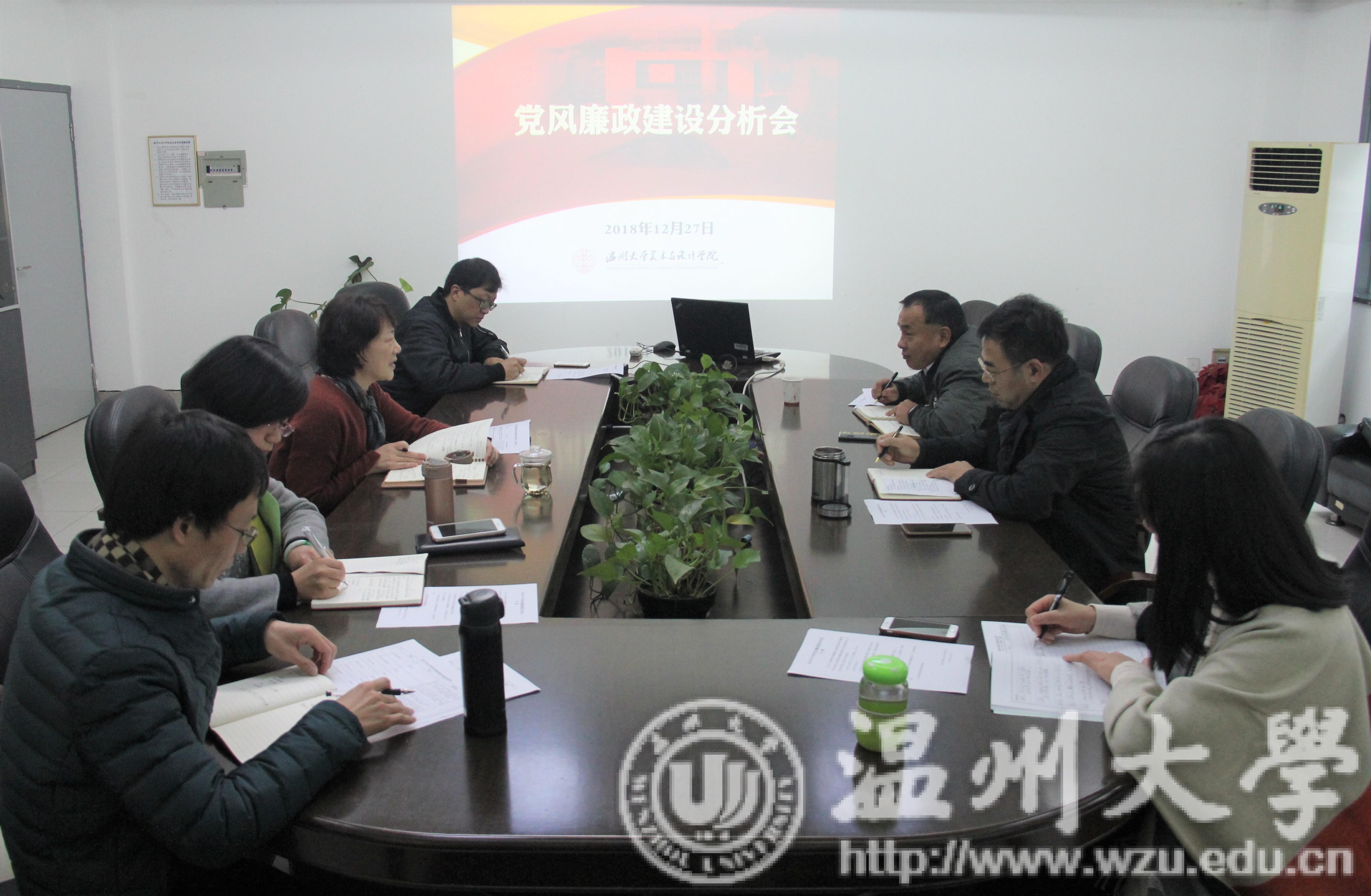 12月27日下午,亚洲电竞投注平台 班子在2B216会议室召开党风廉政建设专题分析会。学校工会主席、纪检委员张希均应邀到会指导。会议由电竞博彩平台 党总支书记张丽萍主持。 会上,张丽萍书记代表电竞博彩平台 领导班子作了2018年下半年党风廉政建设情况分析报告。一是从制度建设上入手加强党风廉政建设,通过一岗双责及任务分解形成长效机制,认真制定并执行相关文件制度;二是及时传达学校相关会议精神,利用每周例会、教工大会向班子内部、全体教师传达会议精神,不断提高思想认识;三是召开专题讲座,除了书记、院长的主题讲座,还邀请赵敏校长、彭小明教授等来院开展专题讲座;四是围绕家风家规家训开展主题教育活动,如永昌堡、霞浦等实地教育实践;五是运用校内经济审计结果开展警示教育,并针对主要问题进行整改落实;六是坚持党务院务公开,在阳光下接受监督,涉及30多个方面的公开内容;七是加强廉政谈话,通过班子一岗双责谈话、廉政预防谈话等,以警示教育为主,提早防范和杜绝腐败。张丽萍还针对目前存在的风险和今后的举措作了详细分析。 院长李运河结合个人工作岗位作党风廉政风险剖析。他从思想认识、工作职责方面分析党风廉政建设工作在认识度和执行力上的重要性。他个人坚守公开透明、阳光是最好的防腐剂;严守秩序、遵守制度;分工负责,集体决策。同时,他对电竞博彩平台 工作中可能存在的风险点做了详细排查,比如项目申报、评奖评优、教师年度考核、个人科研项目经费使用、重大项目经费如市长杯、设备购置、招生工作等等重点隐患排查点,在解决方案上要坚守公平公开、严格程序,同时要从制度上立规矩、严把关,人、财、物管理规范化,结合集体决策、警钟长鸣,才能有效杜绝腐败。 班子其他成员分别结合各自分管工作做廉政风险分析、一岗双责落实、民主集中制和作风建设等情况汇报,并结合风险点排查制定了下一步解决方案。 张希均对亚洲电竞投注平台 班子党风廉政建设专题分析会给予充分肯定,他认为美术班子非常重视、准备充分、风险点表达准确。同时,他提出针对不同程度的风险,要找准日常风险点,把握原则、不碰底线,处理好责任担当与权力使用的博弈问题。