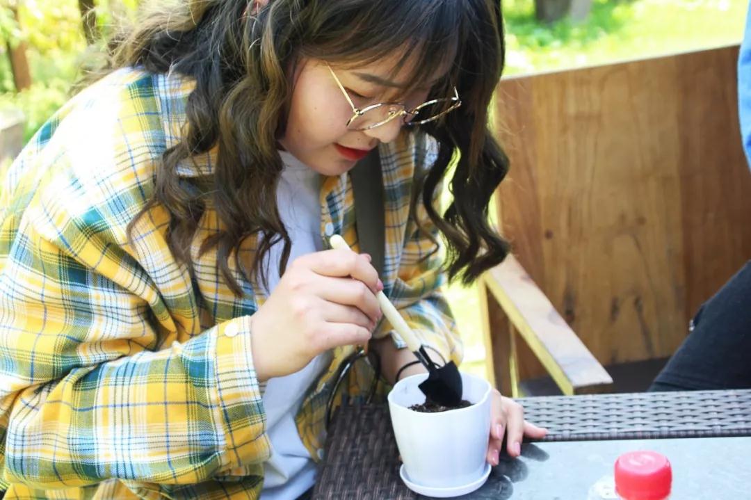 参观完各类植物的同学们来到植物园的一角,利用准备好的植物种子跟土壤、空盆,开始“大展身手”,种下属于自己的那一抹“绿色”,一颗颗波斯菊、薄荷、月季花,相继埋藏在泥土深处。一个下午植物园的活动体验,不仅让同学们了解到绿色植物独特的魅力,同时也给了同学们机会可以自己动手为环境埋下绿色的种子。