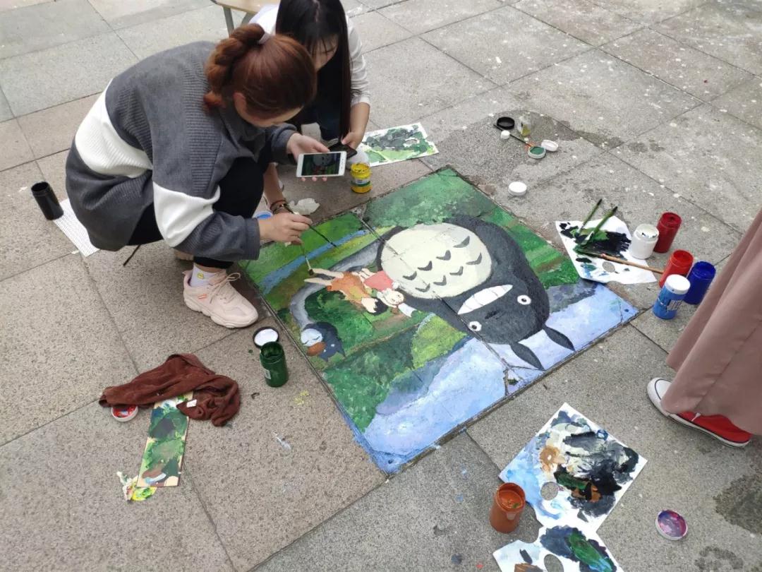 到了4月21日的下午,“井上添花”活动也拉开了帷。为了让绚丽的井盖画温暖校园,活动一开始同学们积极的进入绘画状态,全身心的投入到绘画的意境中,他们或蹙眉构思,或挥笔自如。他们的认真以及奇思妙想吸引了许多过路的同学。为倡导绿色环保,围绕美化校园,激发同学们的想象力和创造力,增强同学们的动手能力和参与能力,发挥美院学子优势,为美院增添一份色彩。
