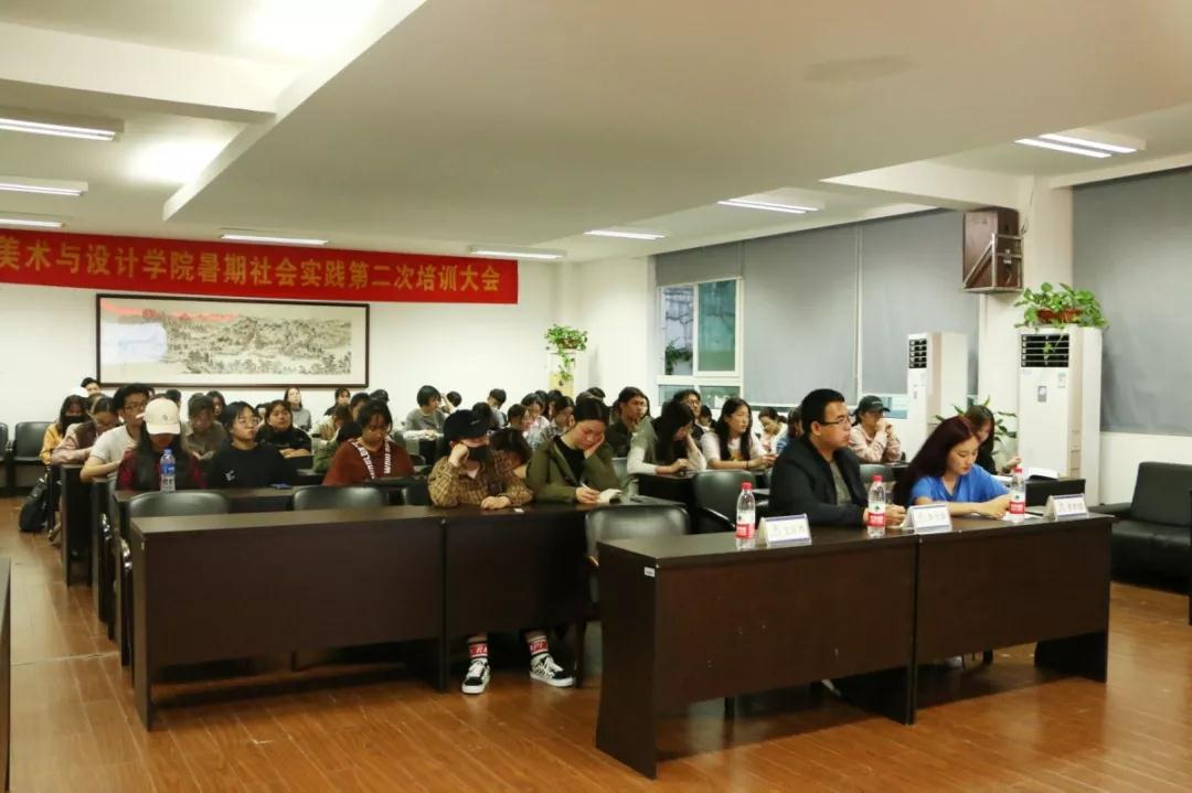 2019年4月28日,美院第二次暑期社会实践培训大会在2B4001举行。参与本次大会的有学生科李雪涛老师、绘暖向南实践队队长王欣雨、蚂蚁行动实践队队长李斯敏、美院团学副主席李颜,还有各个实践队的新任队长和即将要参加暑期社会实践的同学们。