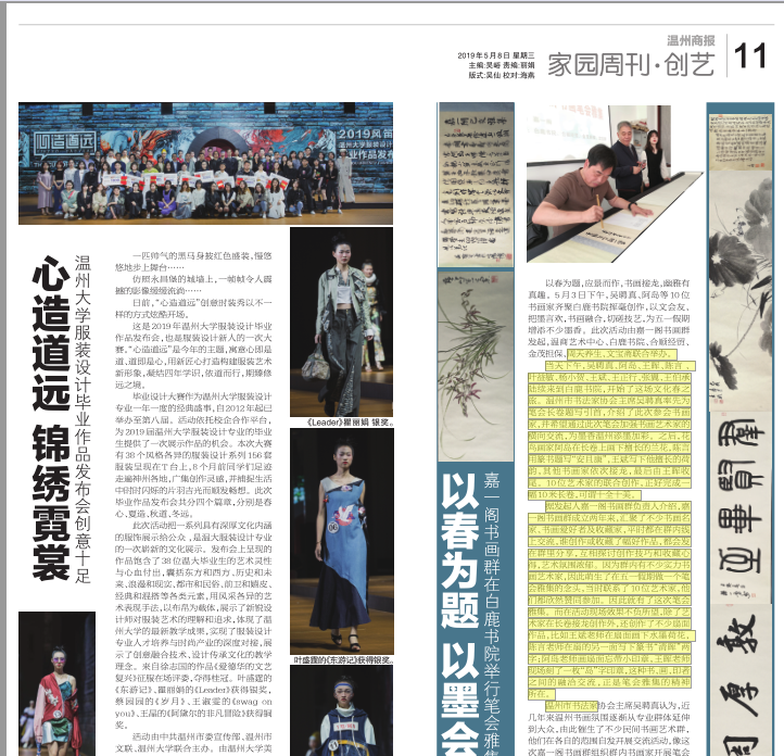 活动由中共温州市委宣传部、温州市文联、温州大学联合主办。由电竞博彩平台-亚洲电竞投注平台 、浙江风笛服饰有限公司、温州时尚电竞博彩平台 合作承办。商报记者郑丽娟