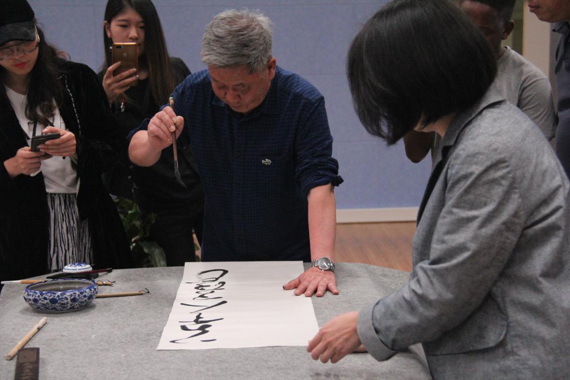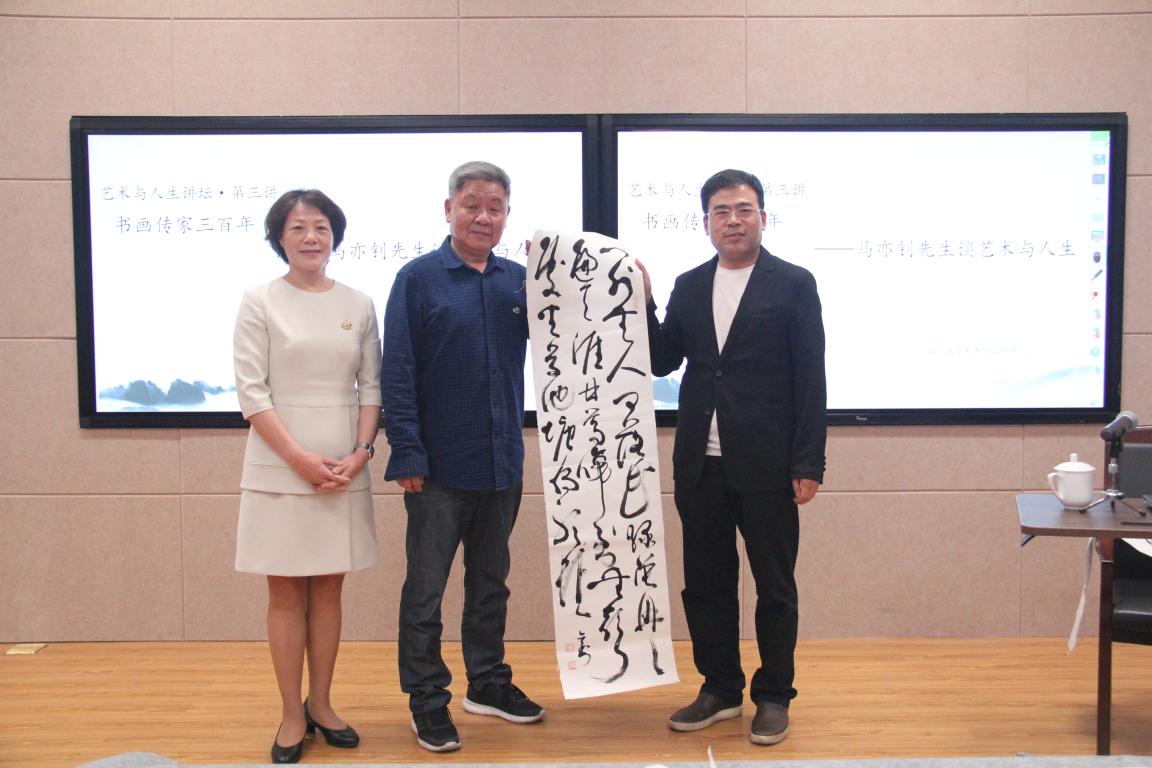讲座结束后,马亦钊老师现场挥毫泼墨,创作出一幅精美的书法作品赠送给亚洲电竞投注平台 ,李运河院长和张丽萍书记接受赠送并做答谢。
