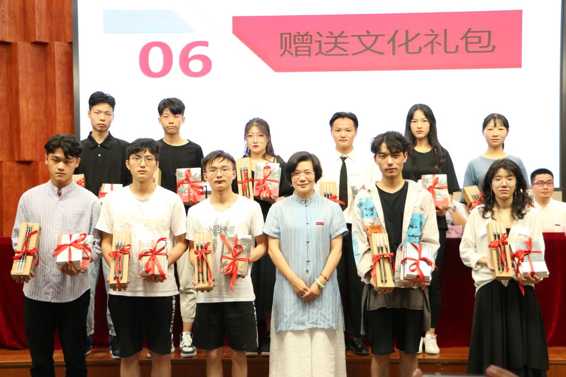 280多名新生加入美院、结缘温大、结缘温州,电竞博彩平台 院长精心为新生们准备了院长“文化礼包”:三本书《习近平的七年知青岁月》、《瓯江风云》,和《艺术与人生》以及每生一支毛笔,让新生了解热爱温州、更加热爱艺术、做新时代好青年。学生代表们庄重地从谢子静院长手中接过沉甸甸的礼盒,将这份关怀传递到每一位同学之间,相信同学们一定会把美院各位领导老师对他们的期望牢记心底、奋发图强,谱写美好的大学精彩篇章。