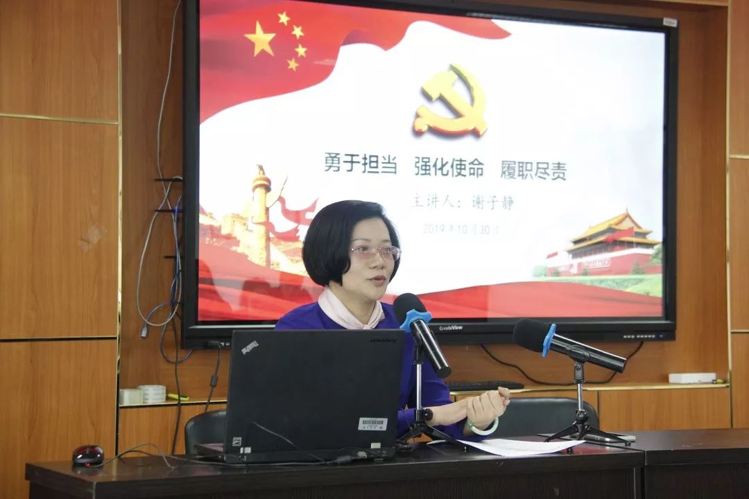 谢子静院长为全体教工党员讲了题为“勇于担当、强化使命、履职尽责”的专题党课。谢院长以习近平总书记对主题教育提出的具体目标“干事创业敢担当”作为切入点,围绕着什么是担当?如何担当?以及怎么去担当?三个方面进行充分阐释。谢院长指出担当体现着党性,是共产党员的优秀品格,大事难事看担当;担当意味着责任,有无担当意味着电竞博彩平台 的事业能否推进,党的干部要能挑起担子、接受考验;担当彰显着作风,真担当需要信守承诺,求真务实,只有真担当才能干出真业绩。